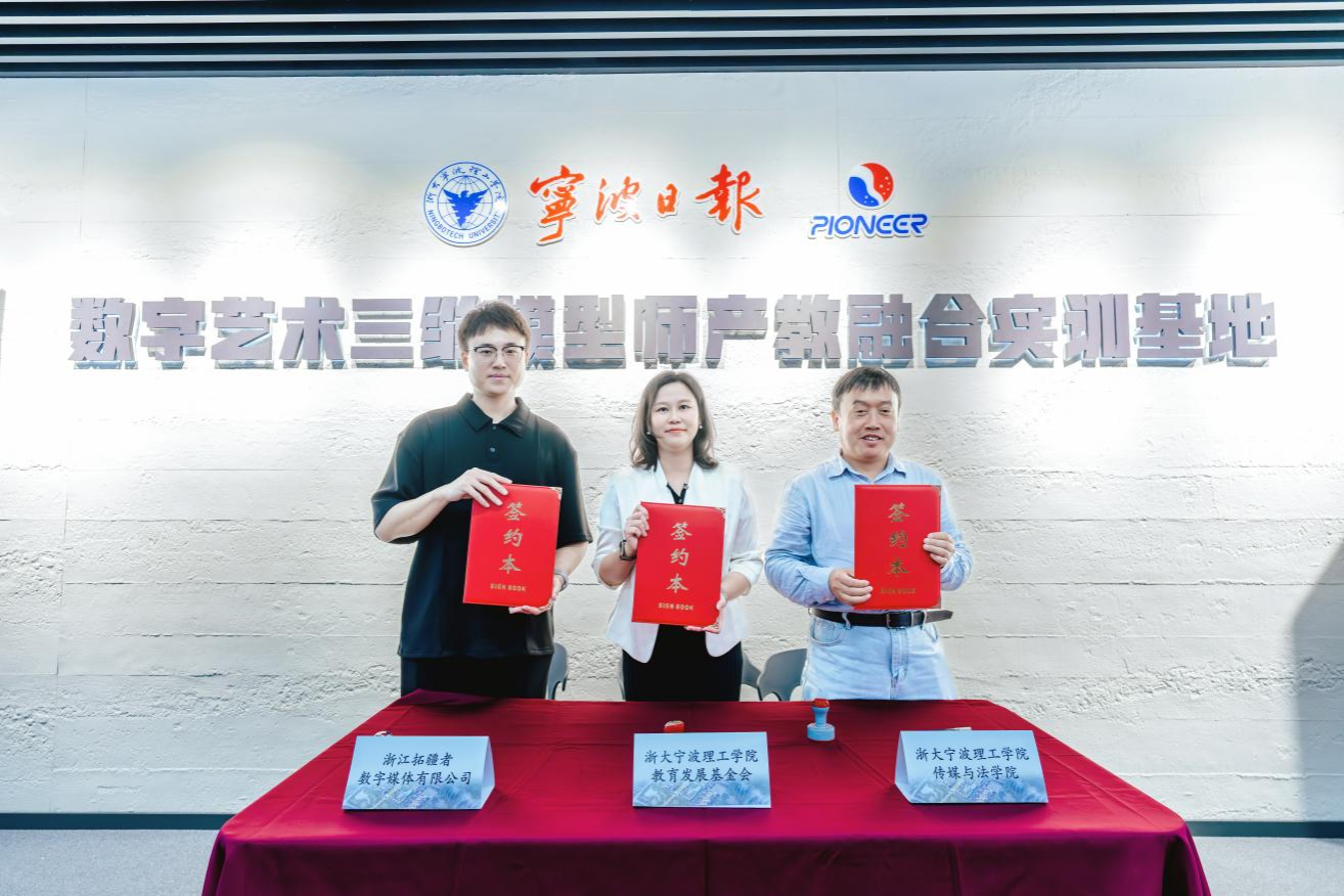 2025年10月20日,“数字艺术三维模型师产教融合实训基地”启动仪式在我校举行。该基地作为新闻与传播专硕学位点研究生联合培养体系的重要平台,由传媒与法学院牵头,联合宁波日报报业集团、浙江花果山文化传媒有限公司、浙江拓疆者数字媒体有限公司共建,旨在探索高校与行业协同育人新模式,推动产教融合实践教学体系建设。