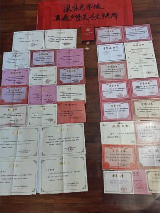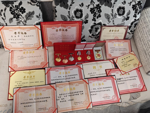 王仕宏同志从柜子里小心翼翼地拿出一叠荣誉证书,轻轻放在桌上。证书上烫金的文字在灯光下闪耀着光芒,那是对他多年来辛勤付出的肯定。他脸上洋溢着质朴的笑容,眼神中满是自豪与谦逊。他轻抚着证书,仿佛在抚摸一段段珍贵的回忆,那些荣誉背后的故事,如同岁月的珍珠,串联起他一生的奉献与担当。