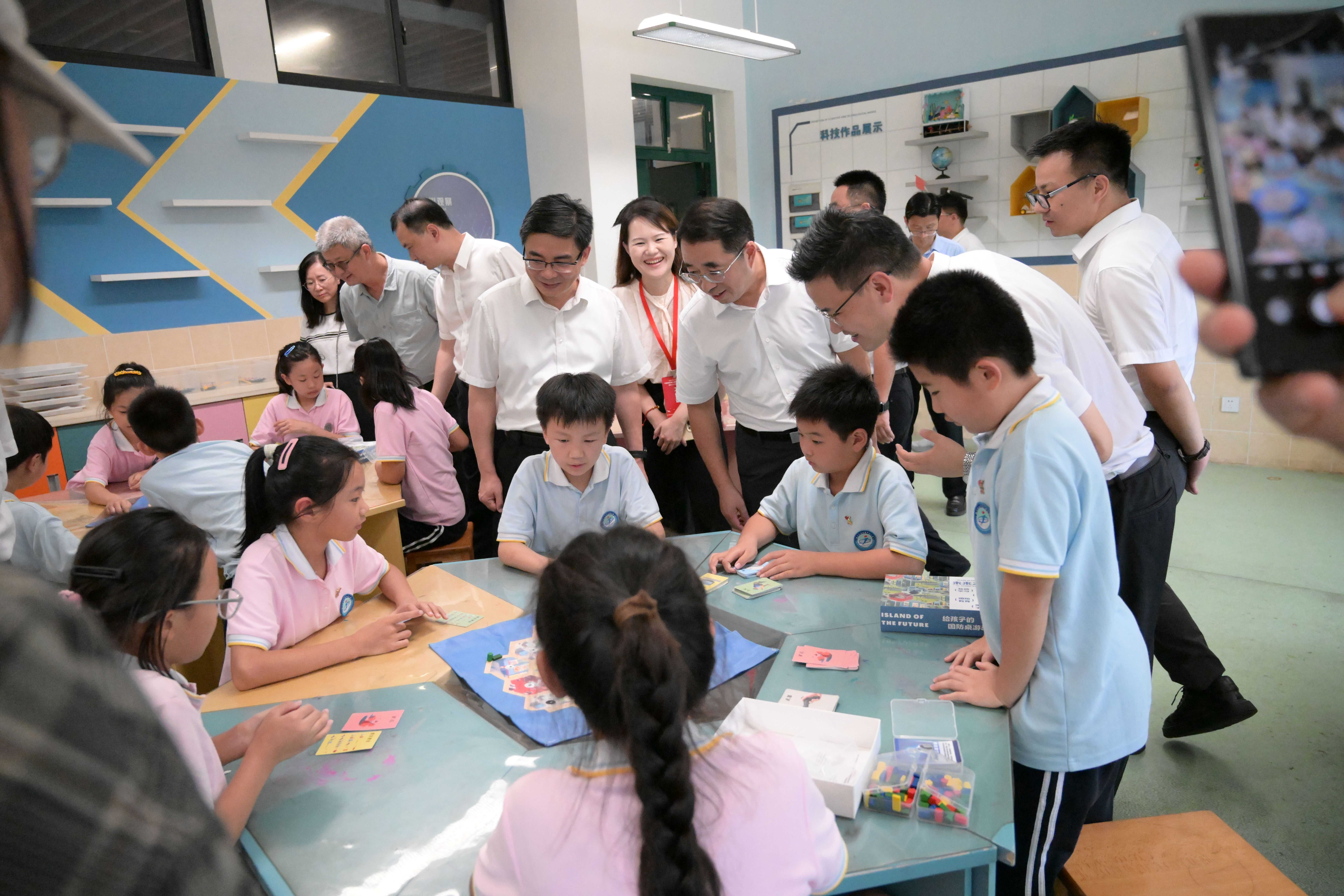 随后,与会嘉宾走进云龙镇甲南小学,现场观摩了由退役军人大学生黄森浩作为教官的军体拳课程,退役军人大学生杨开然主讲的《从汉字“国”里看戍边》国防教育课,以及原创国防主题桌游教学展示,亲身感受国防教育趣味性与知识性相融合的实践成果。