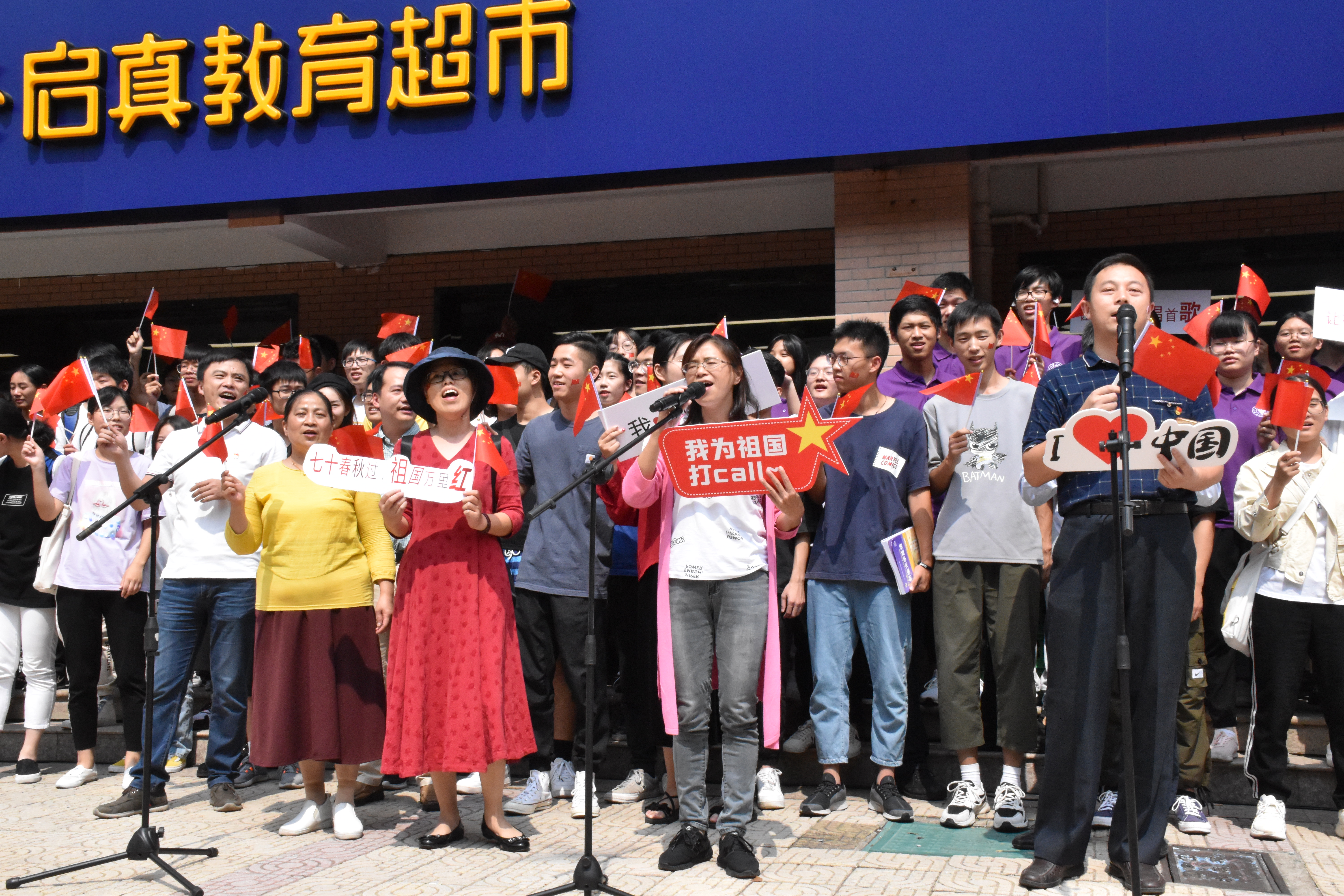 9月29日中午,满怀的深情,吟唱亲爱的祖国;飞扬的歌声,演绎时代的乐章。70周年国庆来临之际,生化学院师生党员在生活园区推出“小我融入大我,青春告白祖国”主题红歌活动,现场发放1500余面国旗,号召过往师生一起唱响2019,为祖国献上一份最真情的告白。