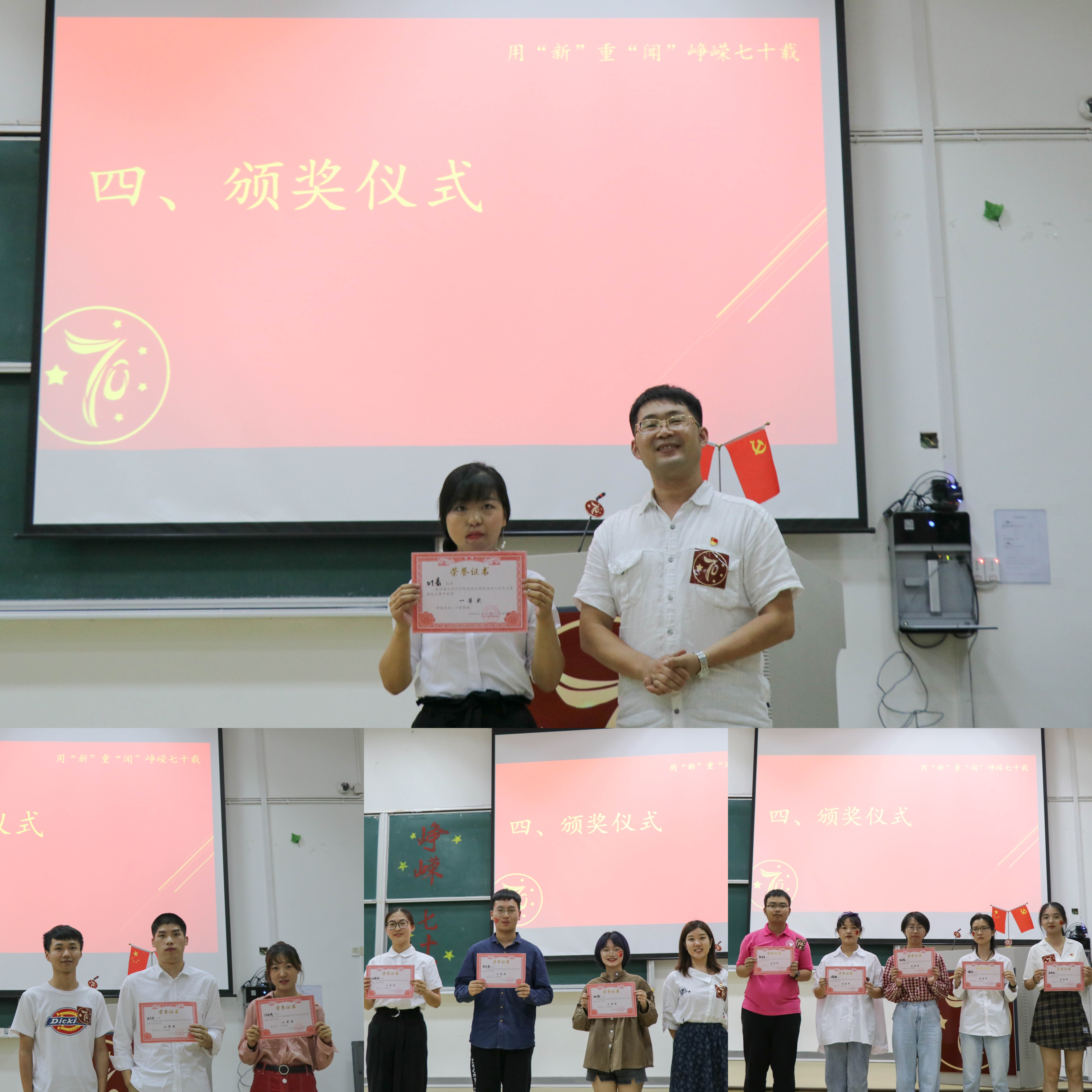 最后,全场起立,挥起小国旗,合唱《我和我的祖国》。在嘹亮的歌声中,主持人宣布红色记者技能大赛最终结果并邀请领导老师进行颁奖。胡鹿鸣老师为一等奖获得者工业192班叶香进行颁奖并合影留念。二等奖获得者为数媒192班何诗琦、新闻学(专升本)沈戈安;三等奖获得者为网新193班姚嘉琪、工业191班黄奕豪、数媒191班林于莉。