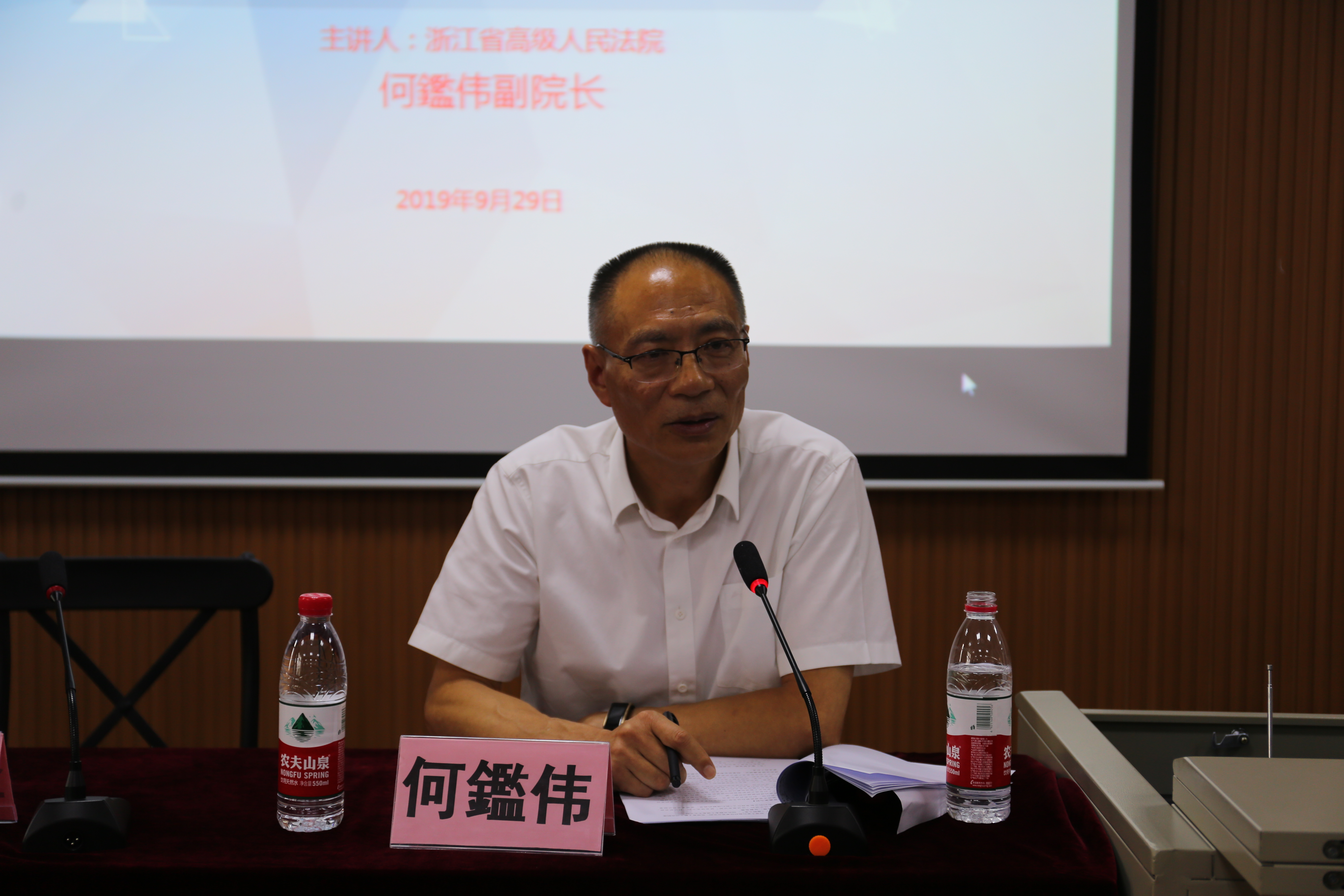 9月29日下午,“法律人应具备的素养”主题讲座由浙江省高级人民法院副院长何鑑伟开讲,何副院长详细讲解了职业法律人应当具备的特征与素养,如何建立法律共同体,分享了培养法律人思维的方法和经验,并强调法律人担负法律使命的重要性。