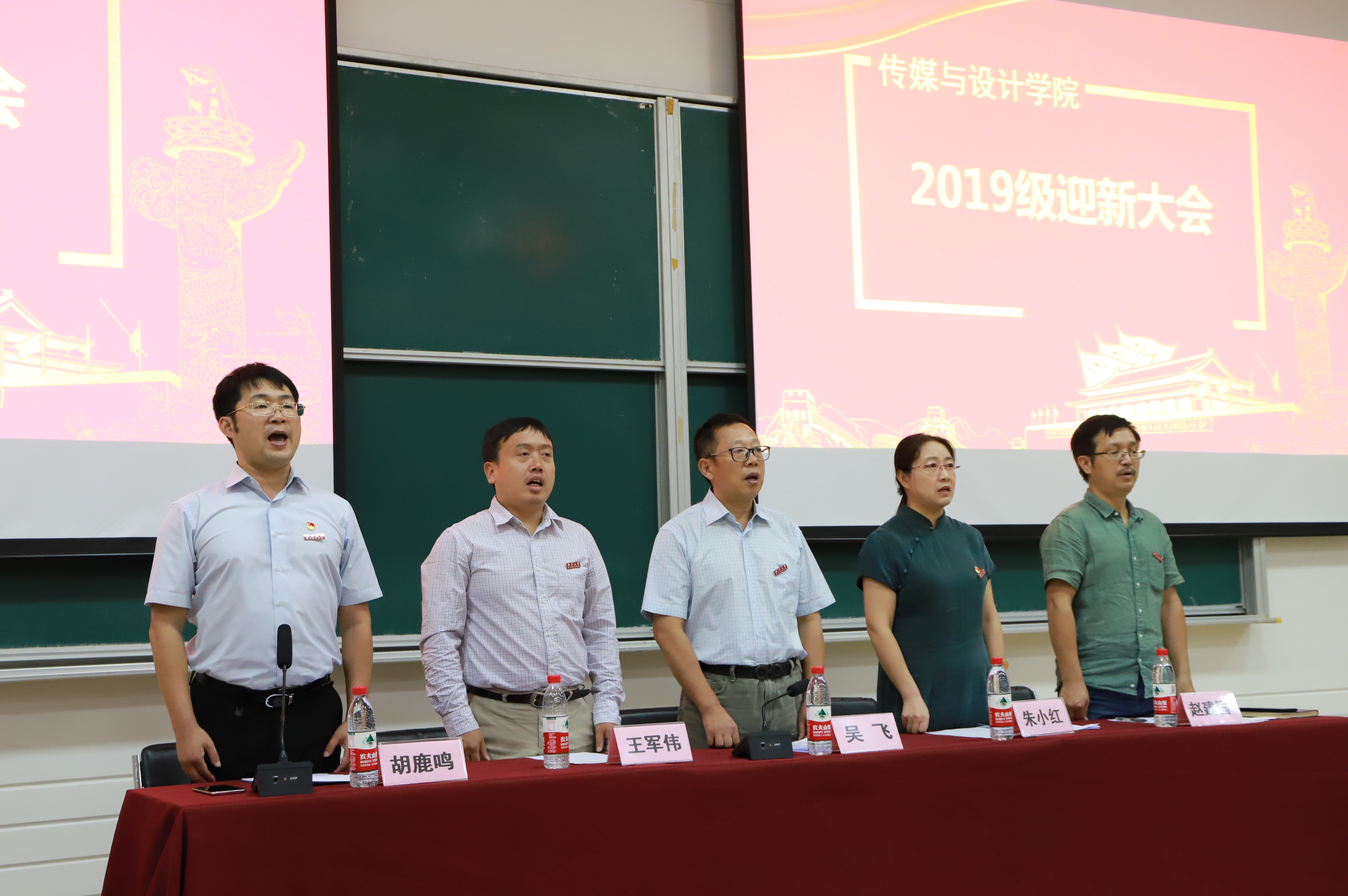 9月16日晚,传媒与设计学院在SB102教室举行2019级迎新大会。传媒与设计学院院长吴飞、学院党委副书记、副院长朱小红、学院副院长王军伟、学院副院长赵建国出席大会。学院教职工代表、老生代表与全体新生们一同参与了大会。大会由学院党委副书记、纪委书记胡鹿鸣主持。