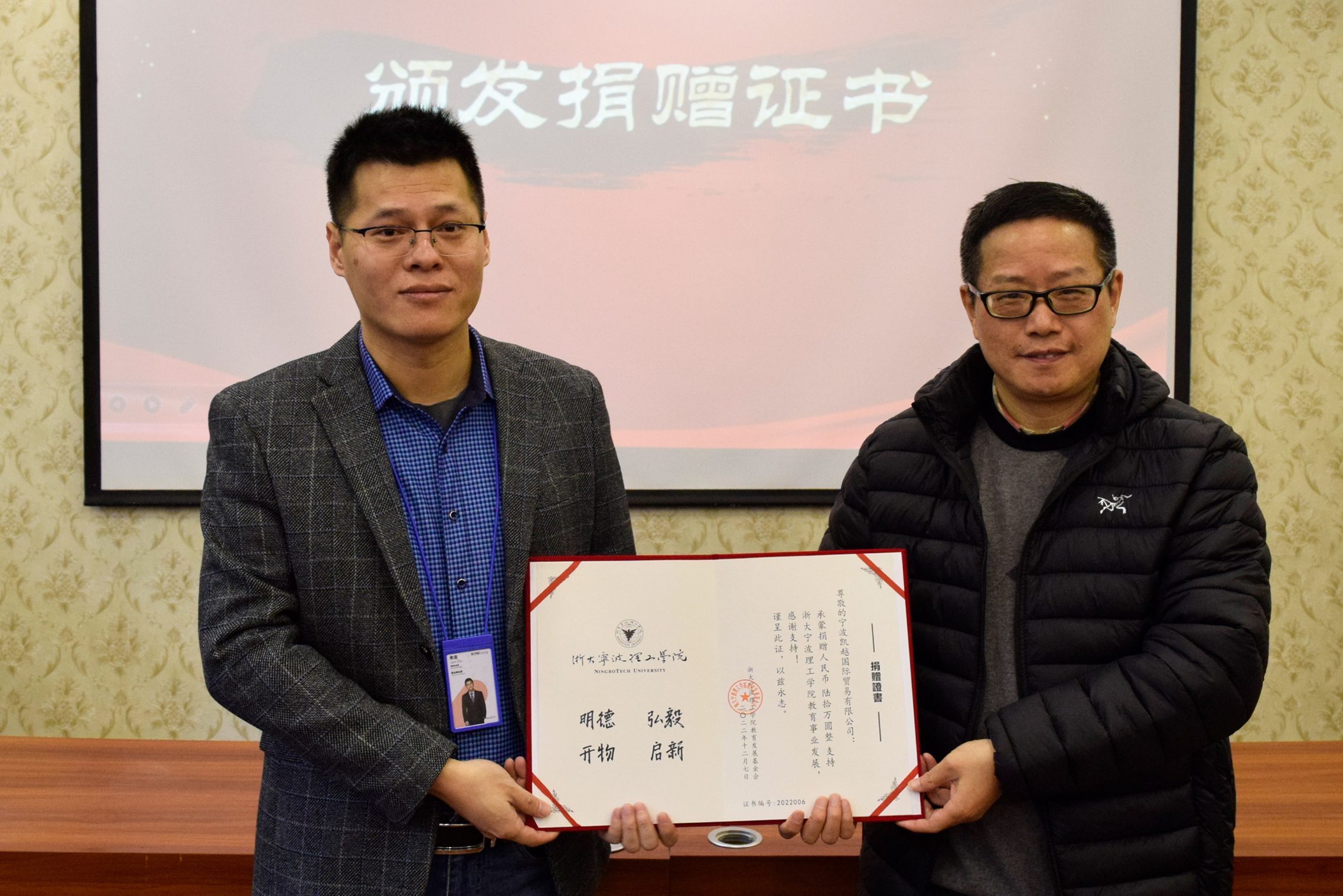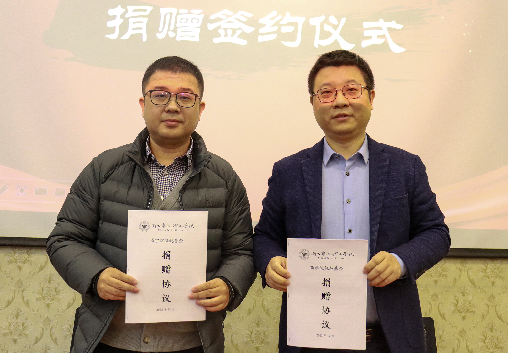 随后梅廷、李俊、马翔、傅晓宇签订了“凯越”基金捐赠协议和实践基地协议;鲁东明和张硕分别向朱吉颁发捐赠证书和实践基地授牌;任凯和吴琼分别为朱吉、梅廷、李俊颁发企业家导师和校友导师聘任证书。