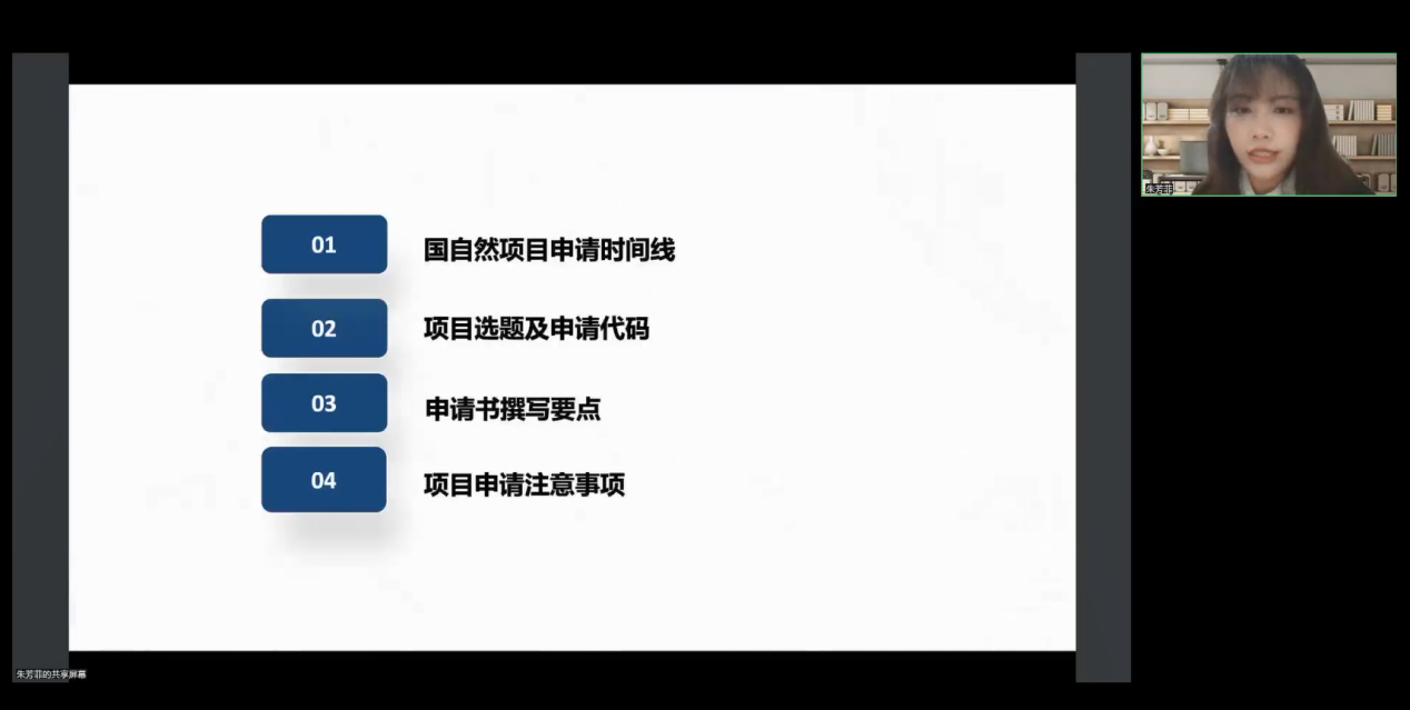 本次论坛活动由鞠芳辉副院长主持,商学院院长苗青教授对朱芳菲老师的到来表示欢迎和感谢。朱芳菲老师从国家自然基金项目申请时间线、项目选题及申请代码、申请书撰写要点、项目申请注意事项四个方面结合自己的申报项目经历,详尽地做了如何写好国家自科基金青年项目申请书的辅导报告,参会老师们也主动和朱芳菲老师探讨自己的申报选题和申报思路,以及自己在申报过程中遇到的困惑和难点。与会老师们表示受益匪浅。