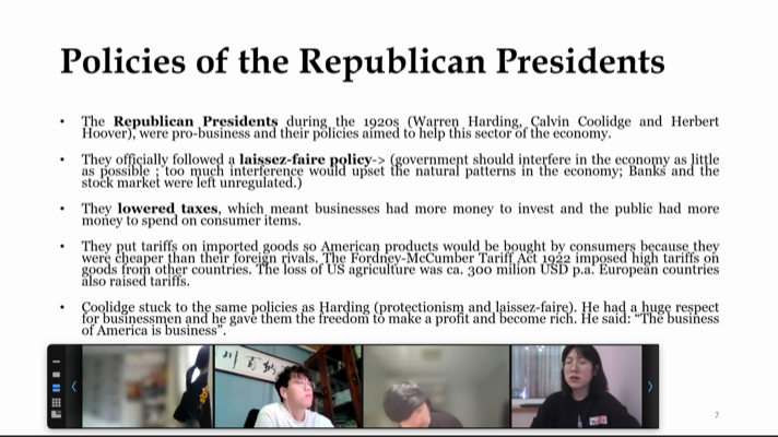 此次线上访学项目的课程内容主要有欧洲多元化政治体制、中国与欧盟经济关系的发展,国际金融市场和外交政策等,通过一些经济贸易的经典案例的讲解,同学们对专业内容了解更加深入。