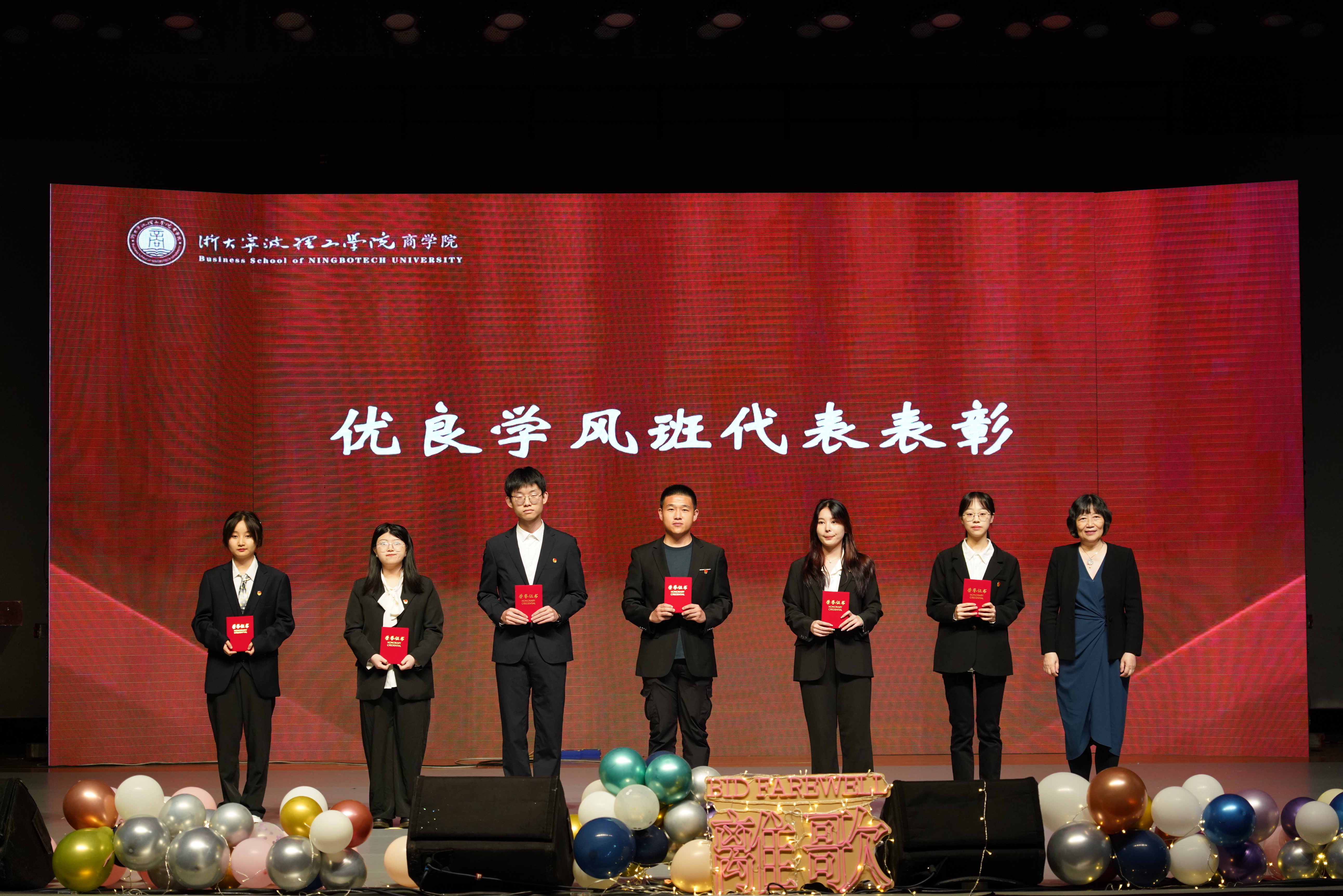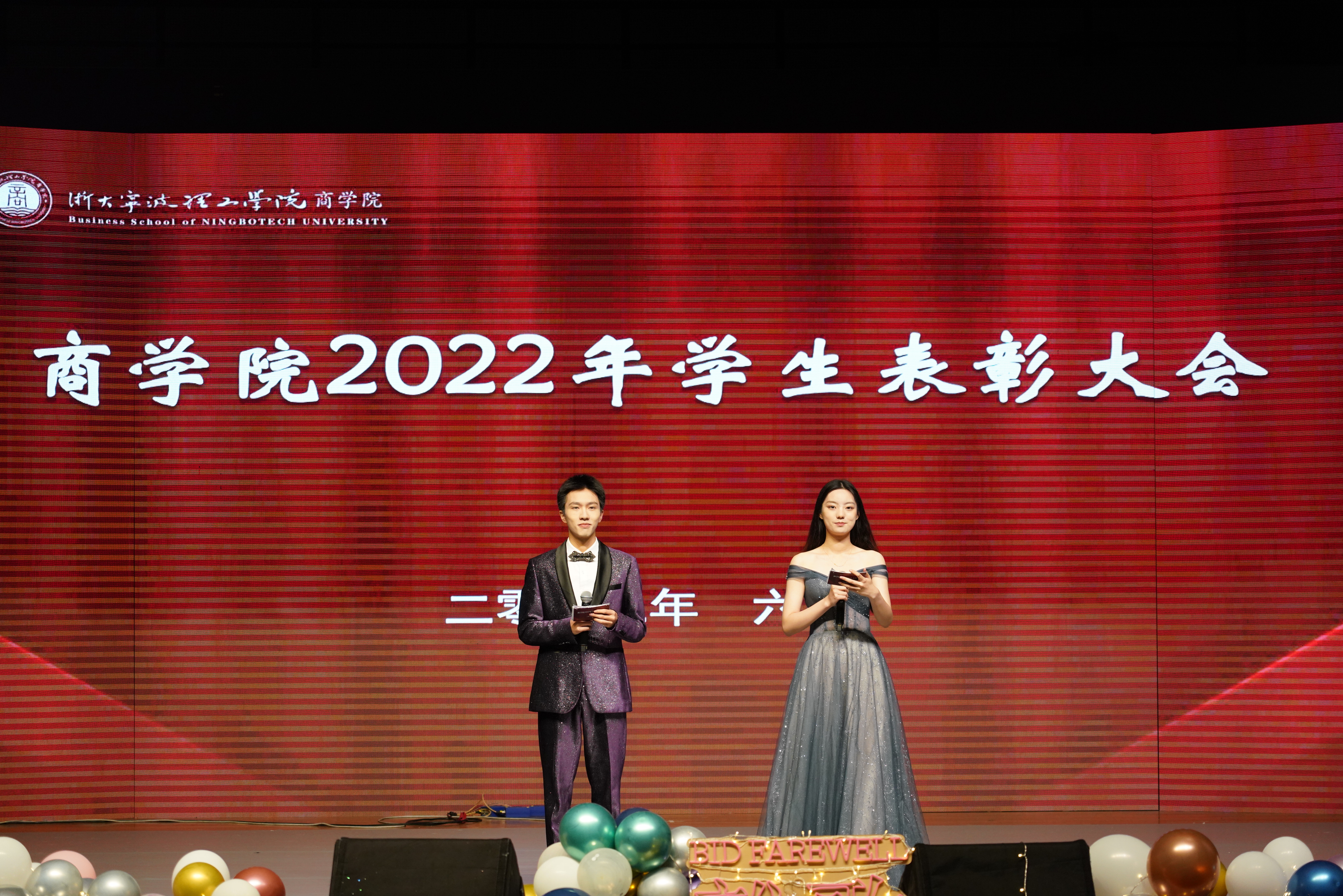 6月1日晚,商学院2022年学生表彰大会在可珍讲堂隆重举行,同步进行网络直播。致公党宁波市委员会专职副主委方巨成,浙天集团有限公司董事长助理黄俊豪,宁波港东南物流集团有限公司海外发展部总经理贾超,宁波华通留学、海派外语校长黄靓等应邀参加大会。学校党委副书记冯建波,商学院党委书记兼执行院长林承亮,学校启新特聘教授肖文,商学院副院长鞠芳辉,商学院副院长马翔,商学院党委副书记、纪委书记吴琼出席会议,商学院毕业班班导师、学工办辅导员及表彰学生代表参加会议。