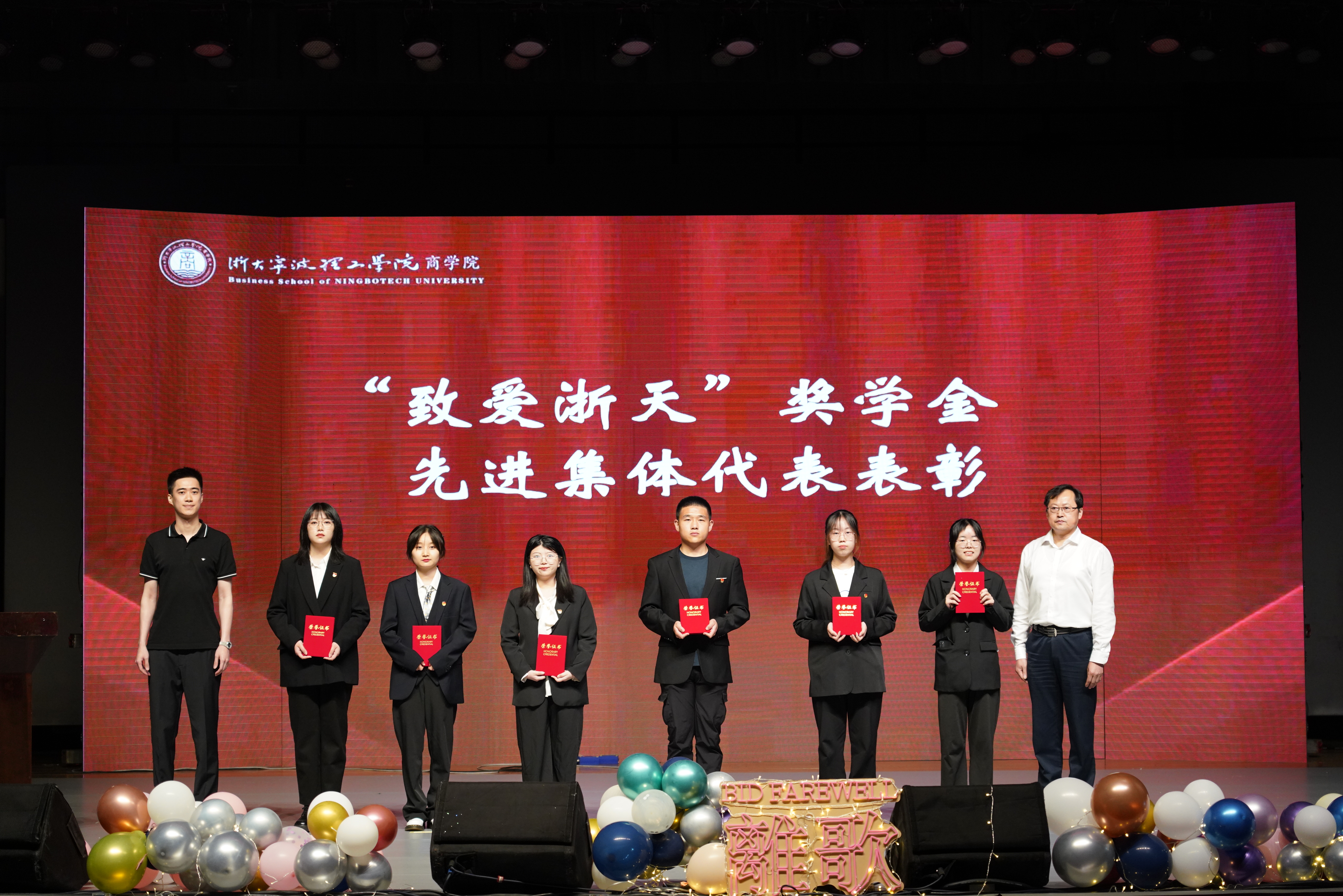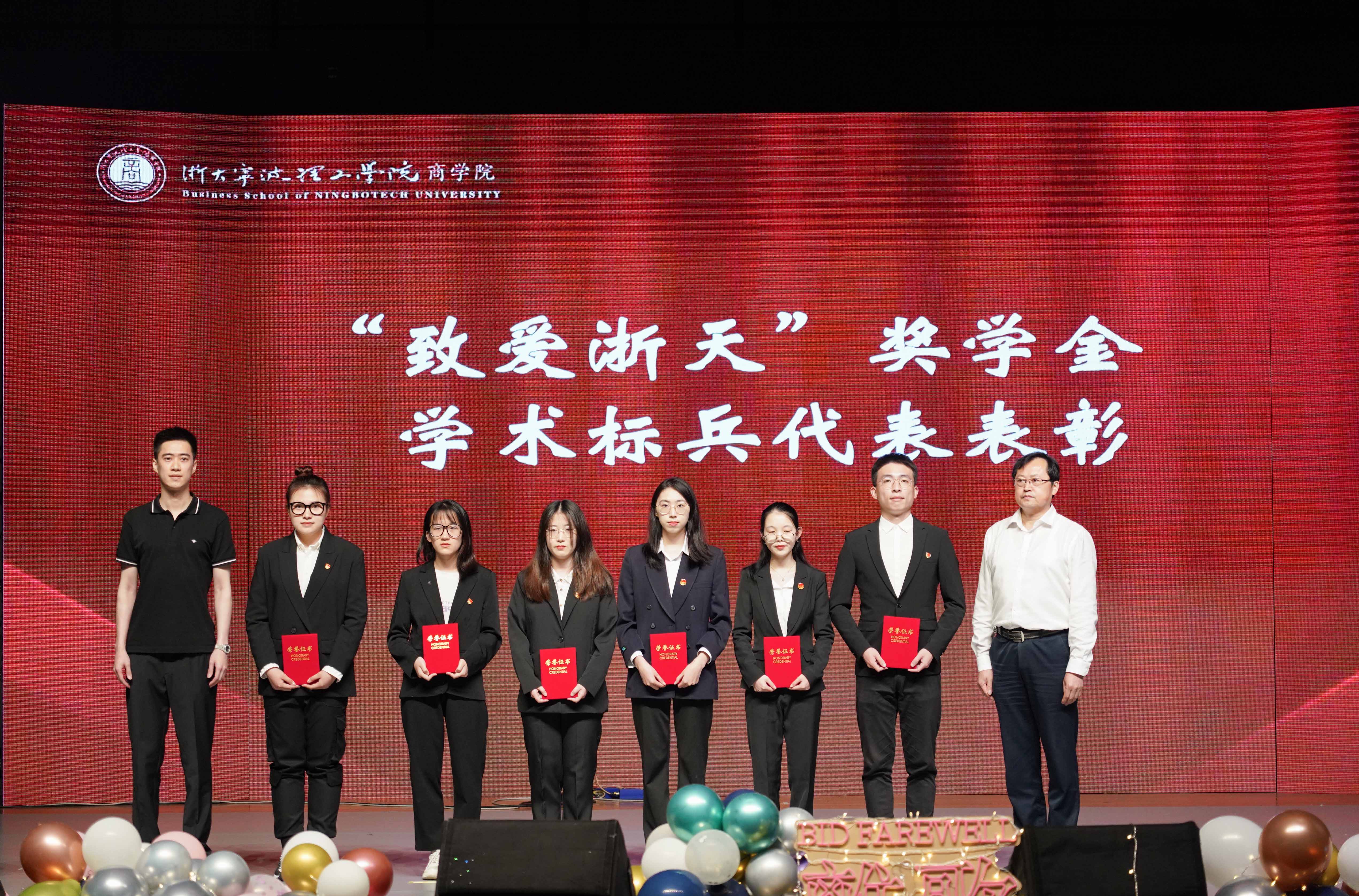 随后,鞠芳辉宣读各项表彰名单,并鼓励受到表彰的同学坚持不懈、勤奋努力、全面发展,永远保持青春的朝气、奋斗的姿态和时代的担当。接着方巨成、黄俊豪、贾超、任燕为致爱浙天奖学金、东南物流奖学金、华通海派奖学金获奖学生颁奖;校特聘教授肖文、商学院班子成员分别为校级党员之星、十佳学生、励志先锋,校级优良学风班、先进班级、优秀团支部,商学院“六讲六做”优秀宣讲人等奖项颁奖。
