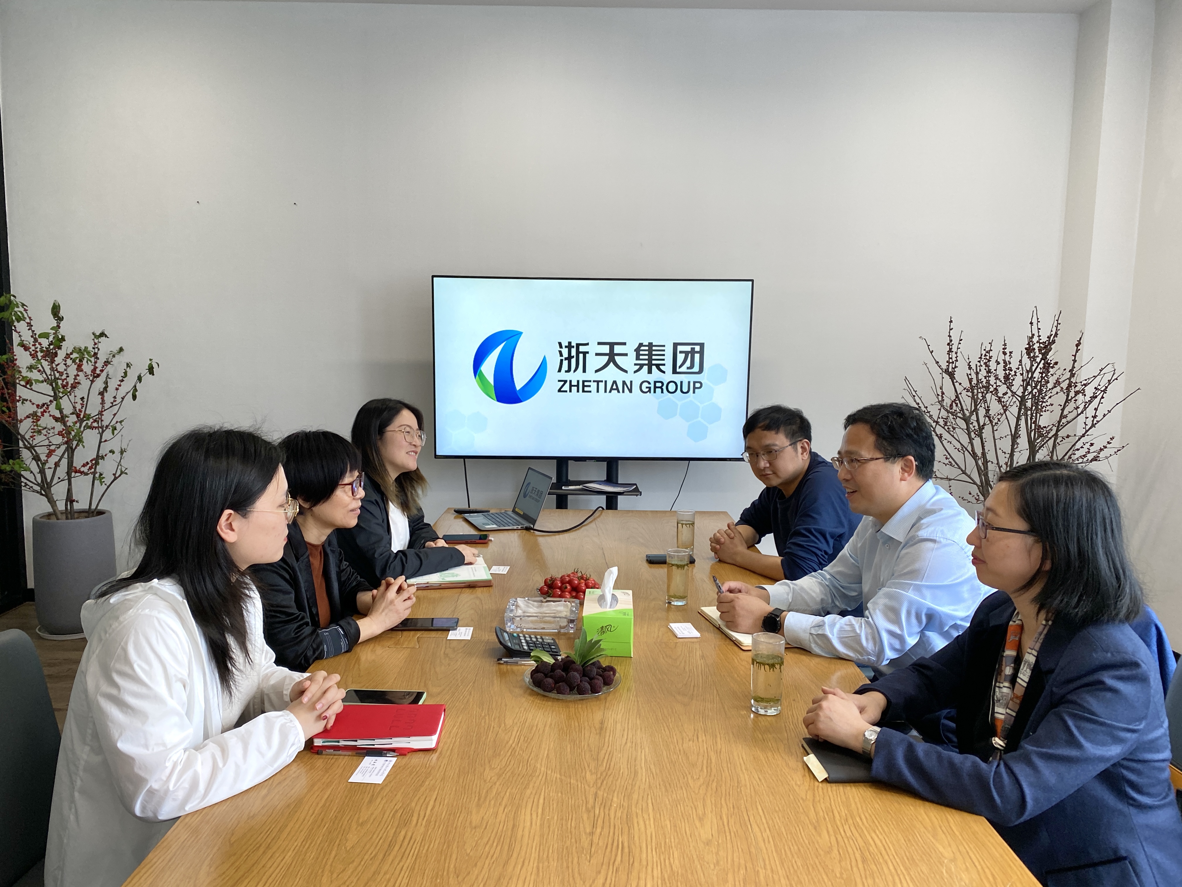在浙天集团,副总裁李平接待了考察团一行。双方就数字商科与企业信息化产业的融合展开了重点交流。在认真听取浙天集团对高校毕业生的用人需求特点后,双方就下一步如何更有成效的开展校园招聘达成了共识。林承亮介绍了近些年学院“致爱浙天”奖助学金的评选和使用情况,表示会督促得到奖助学金帮助的学生用好这笔善款,要将对社会的感恩转化为实现自身价值的志向、自强不息的源泉和学好本领的动力。
