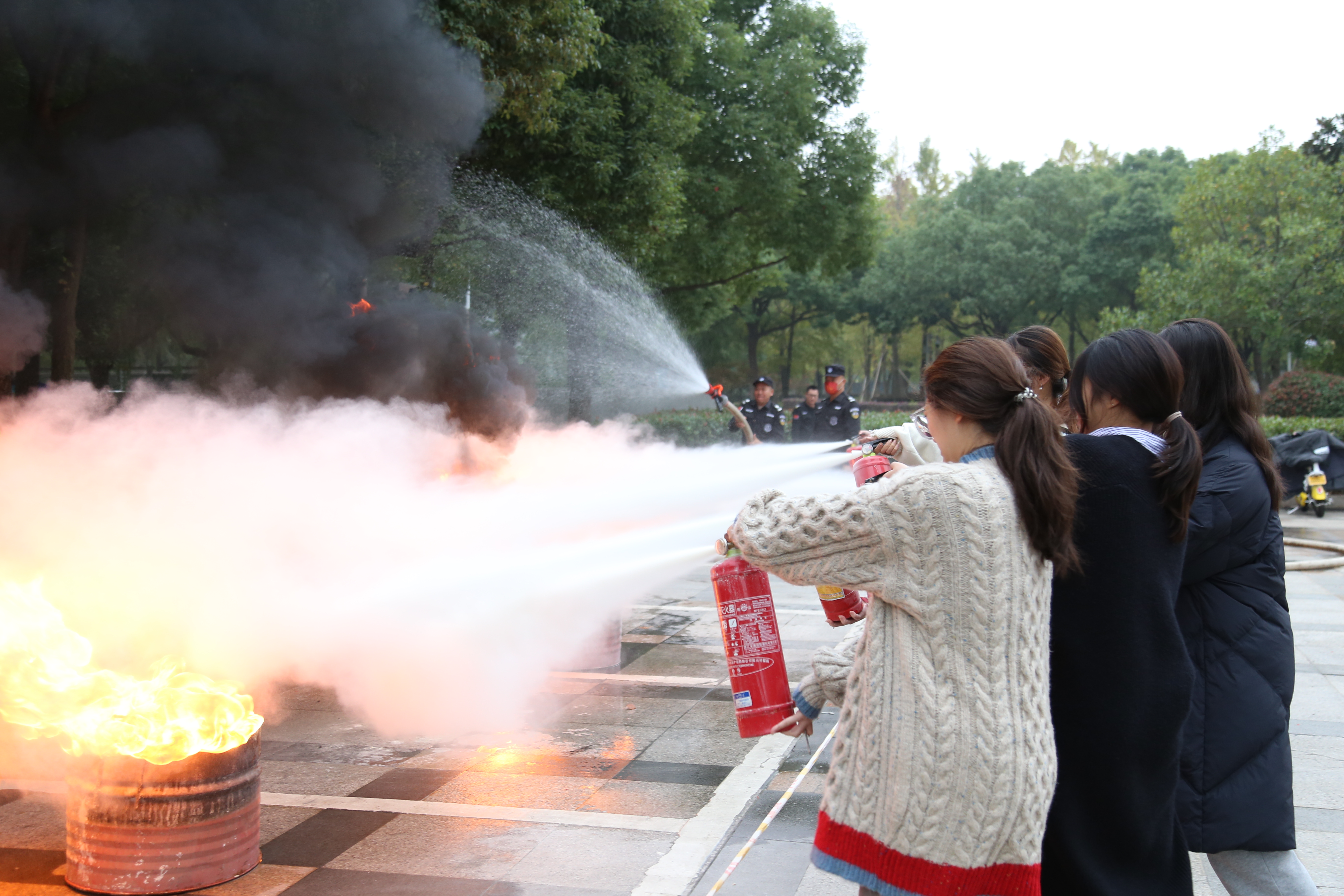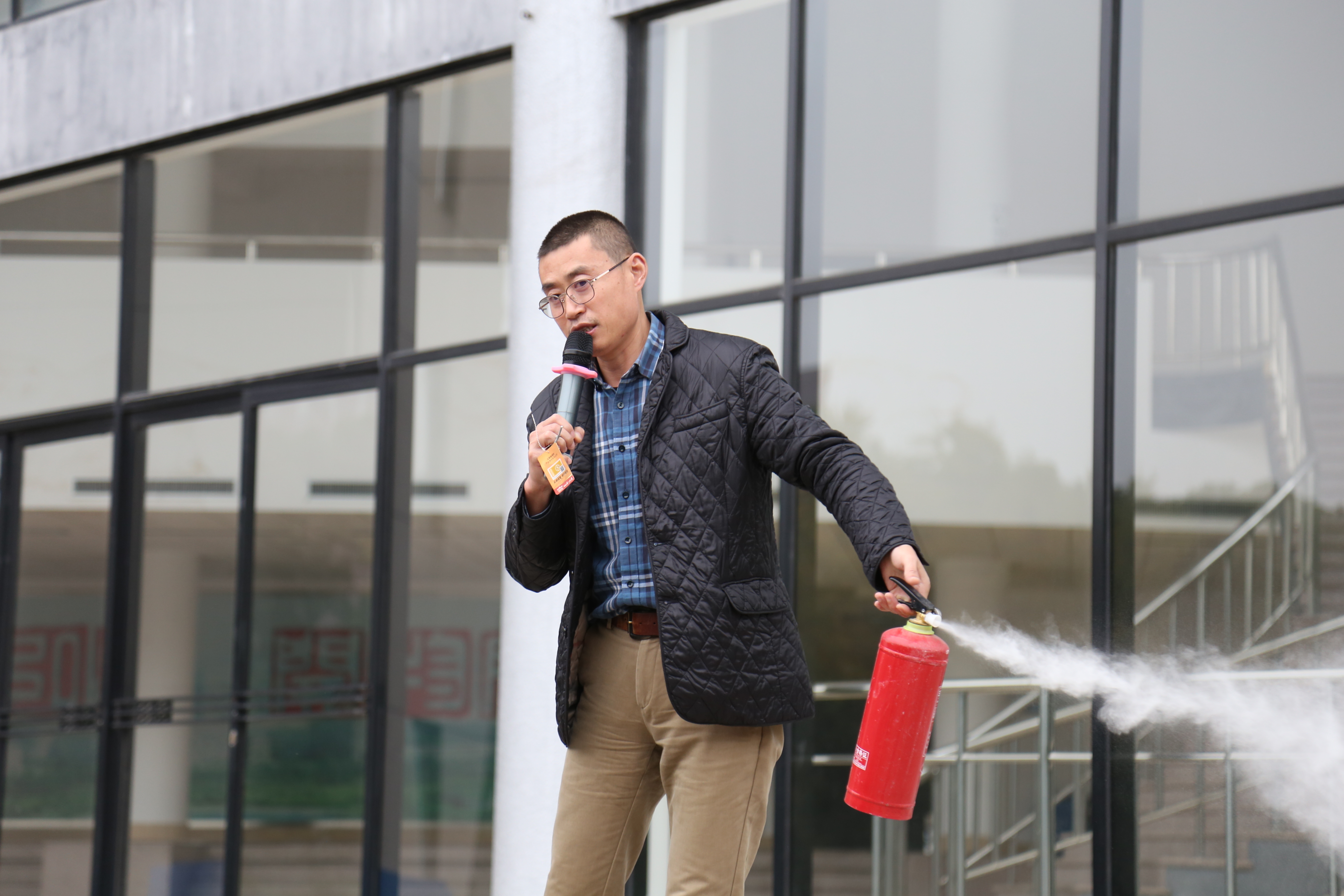 燕永波结合真实案例向同学们讲解了安全用电知识,以及发生火灾情况下如何正确逃生。他详细讲解并示范操作了灭火器的使用方法,并组织师生进行实战演练。师生踊跃参与,轮番上阵,使用灭火器多次将大火扑灭。