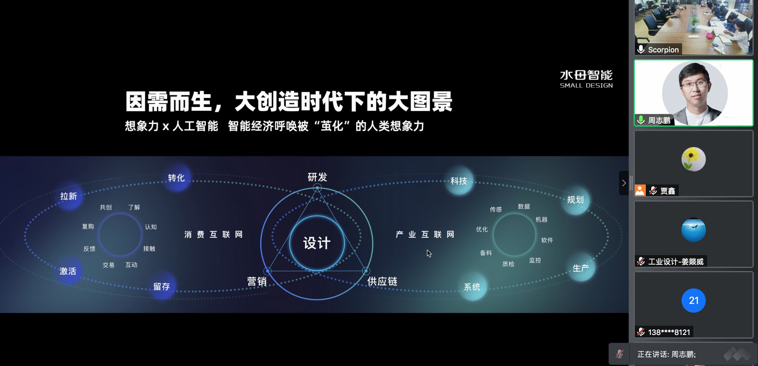 5月10日上午,设计学院举办了本学期第二次学术沙龙暨“锐意创新,建设未来”智能产品创新设计与知识产权论坛。活动采用线上线下同步进行的形式,邀请了中国(宁波)知识产权保护中心主任毛高蔚、智能制造产业知识产权联盟副理事长陈媛青、洛可可创新设计集团水母智能联合创始人周志鹏和南方科技大学创新创意设计学院助理教授罗涛做主题演讲。设计学院院长罗仕鉴、副院长赵建国、院长助理夏秀敏以及相关学科师生参会。论坛由赵建国主持。