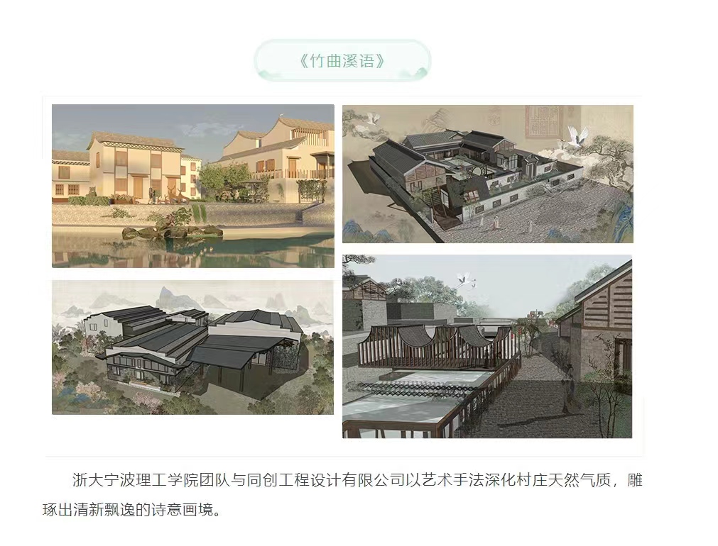 由余姚市四明山旅游度假区管理委员会主办、余姚浙协置业有限公司承办的“绿城金茂·春澜璟园杯”2021余姚四明山乡村空间艺术化设计竞赛结果于日前揭晓。此次参赛队伍多为设计单位团队,经过激烈角逐,我校学生团队脱颖而出,环境设计191班的吴书言、戴思琪、吴淑曼三位同学组成的团队在邬秀杰、励宇辉两位老师的悉心指导下,设计作品《竹曲溪语》喜获三等奖。