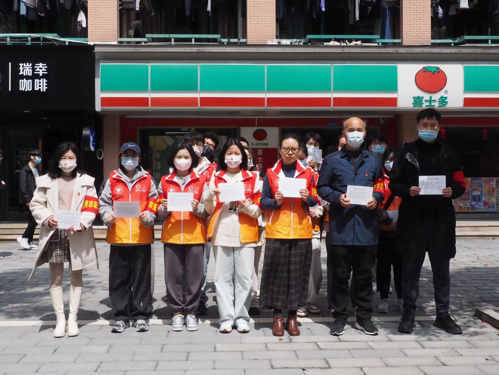 3月23日中午,设计学院“师生党员抗疫志愿先锋队”在西门周边、小北门、30幢垃圾房、东门周边、17幢围栏及26幢围栏开展“让党旗在疫情防控第一线高高飘扬”外卖劝导活动。设计学院党委副书记、纪委书记叶卫树作了动员讲话,金慧燕作具体工作布置。教师党员代表王萍、辅导员刘舒与学生党员骨干参加了本次活动。通过参与劝导活动,师生党员们更进一步认识到疫情防控所面临的严峻形势,纷纷表示一定会配合学校相关部门把疫情防控工作抓紧、抓实、抓细,最大程度降低社会面传染源进入校园的风险。