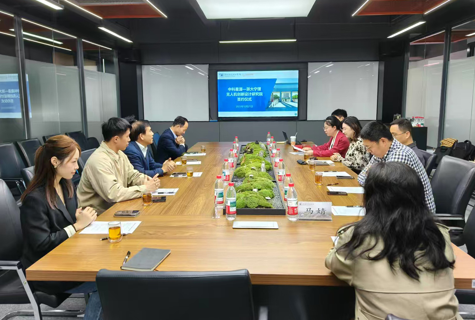 10月21日上午,中科星源-浙大宁理无人机创新设计研究院签约仪式在设计学院211会议室举行,双方代表及嘉宾齐聚现场,共同见证校企合作的重要时刻。原宁波市贸促会贸易促进部部长、中科星源企业战略顾问徐志伟,中科星源董事长胡志峰,学校科研处、设计学院相关负责人和教师代表等参加会议。