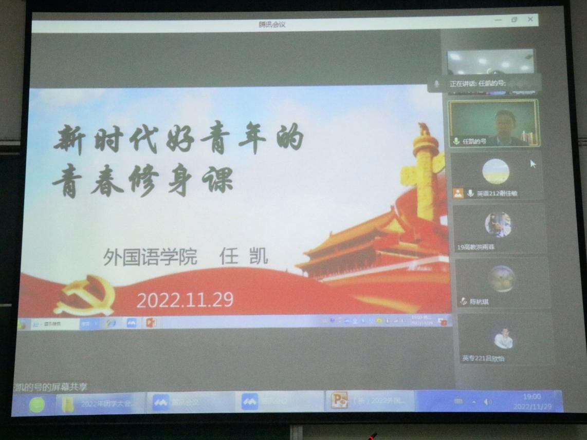 2022年11月29日,外国语学院团学大会暨第十一期团校开班仪式于SB104顺利进行。学院党委副书记任凯,党委委员、兼职辅导员胡海鹏,团委副书记洪雨菲、思政副主管阮佳蒂、外院班助及团学各组织成员等参加此次大会。