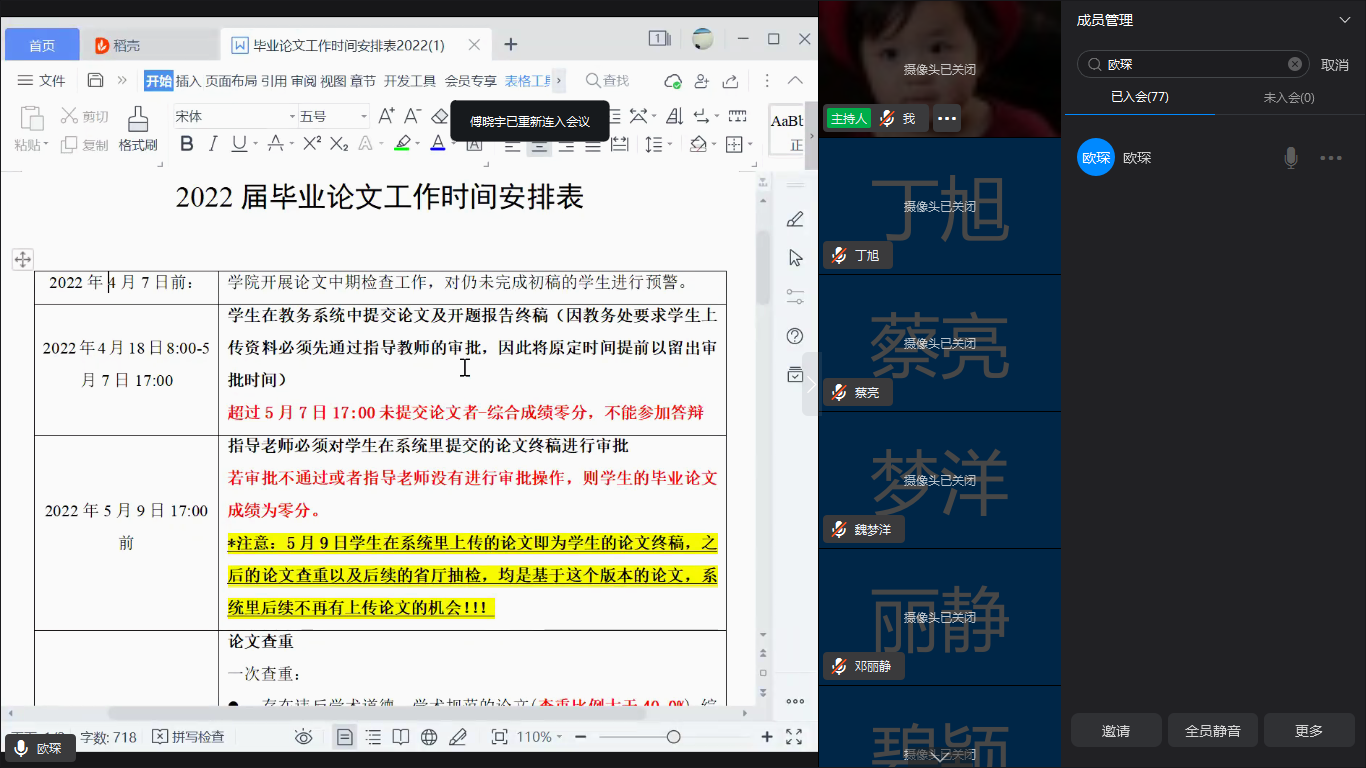 此外,院长助理欧琛通报了2022届毕业论文工作安排情况。
