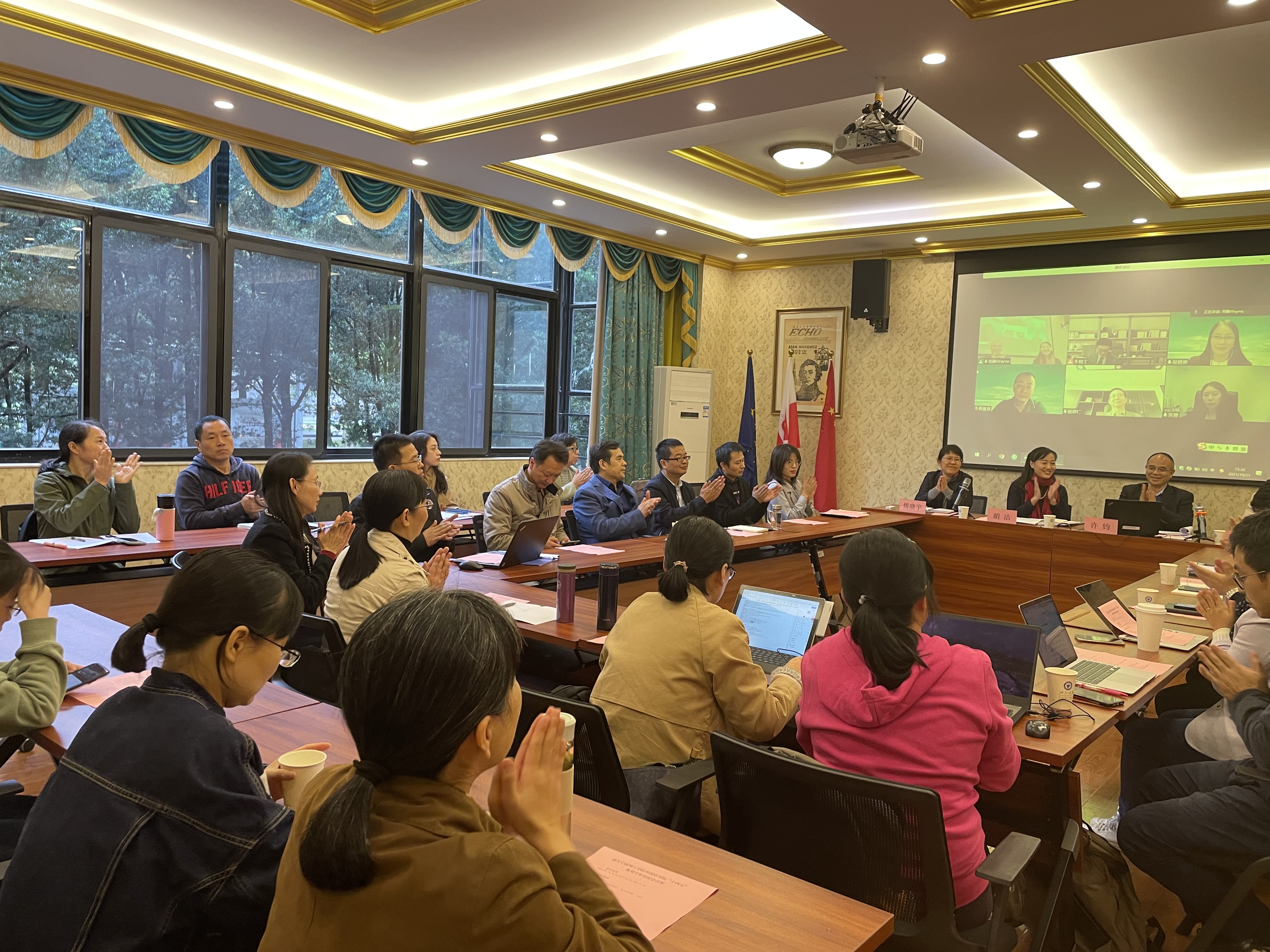 本次论证会采用线上线下相结合的形式,邀请了浙江大学文科资深教授、教育部长江学者许钧教授,学校“钱湖客座教授”、浙江大学求是特聘教授程工教授,广东外语外贸大学、云山杰出学者韩景泉教授,同济大学外国语学院院长、教育部青年长江学者吴赟教授,浙江大学、教育部青年长江学者梁君英教授5位专家参与论证,并邀请到学校校长杨德仁院士出席会议,学院领导班子、学术委员会委员、研究所负责人、教研室负责人、行政人员参加了会议。
