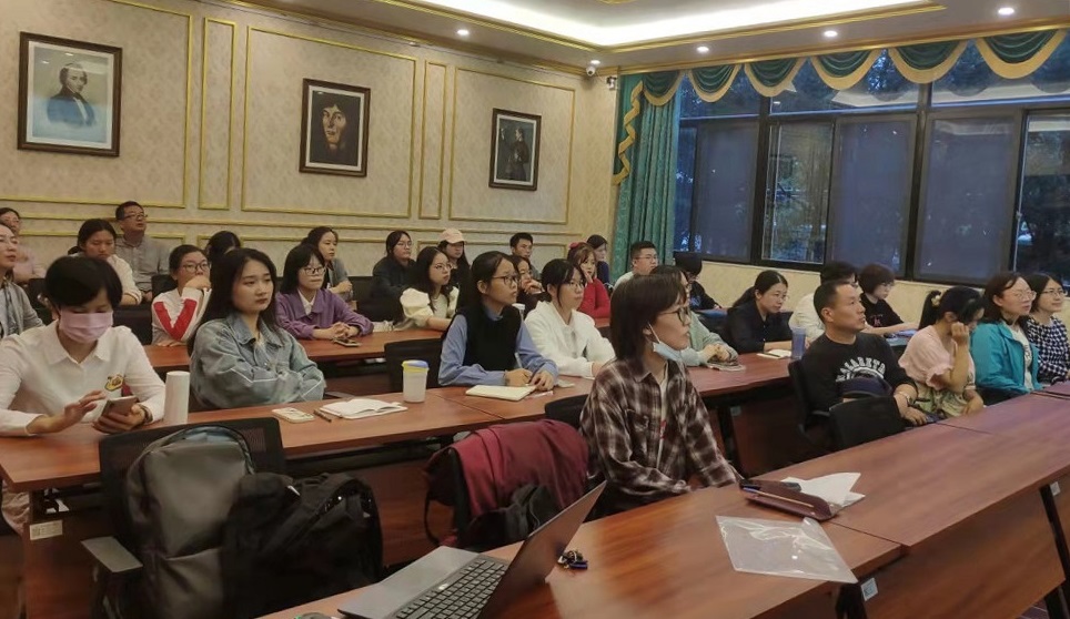 2021年10月12日下午,在SC106波兰研究中心,由外国语学院邀请的宁波诺丁汉大学语言中心资深讲师Joy Edmonnson,为师生做一场主题为“[随园名家讲坛53期]学术英语中的文化概念及其对EAP教学的启示”的讲座。讲座由外国语学院孙广平副教授主持。此次讲座有30余名师生参加,还吸引来自宁波兄弟院校的外语教师到场旁听。