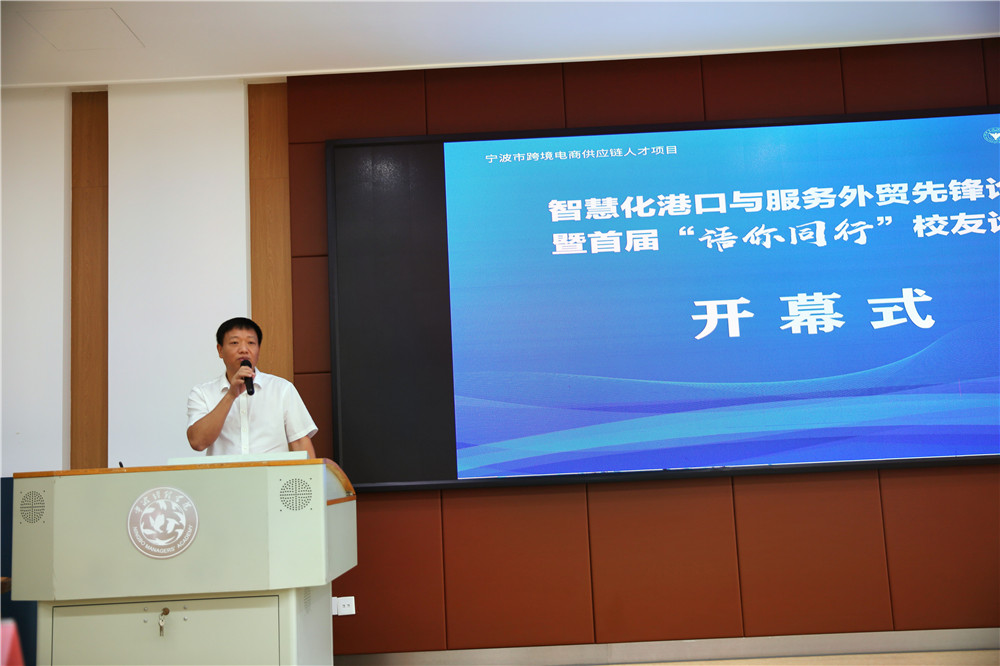李凤旺在开幕式致辞中指出,处在宁波这个全国外贸名城,学校根据宁波主导产业需求,确定了智慧化港口与服务、数字化设计与制造两大学科群的主攻方向,此次论坛既是学校从事外贸行业校友的一次聚会,更是学校响应《唱好杭州、宁波双城记宁波行动方案》的一次“头脑风暴”,希望广大校友能够为宁波建设“新型贸易中心”行动目标贡献更大力量。