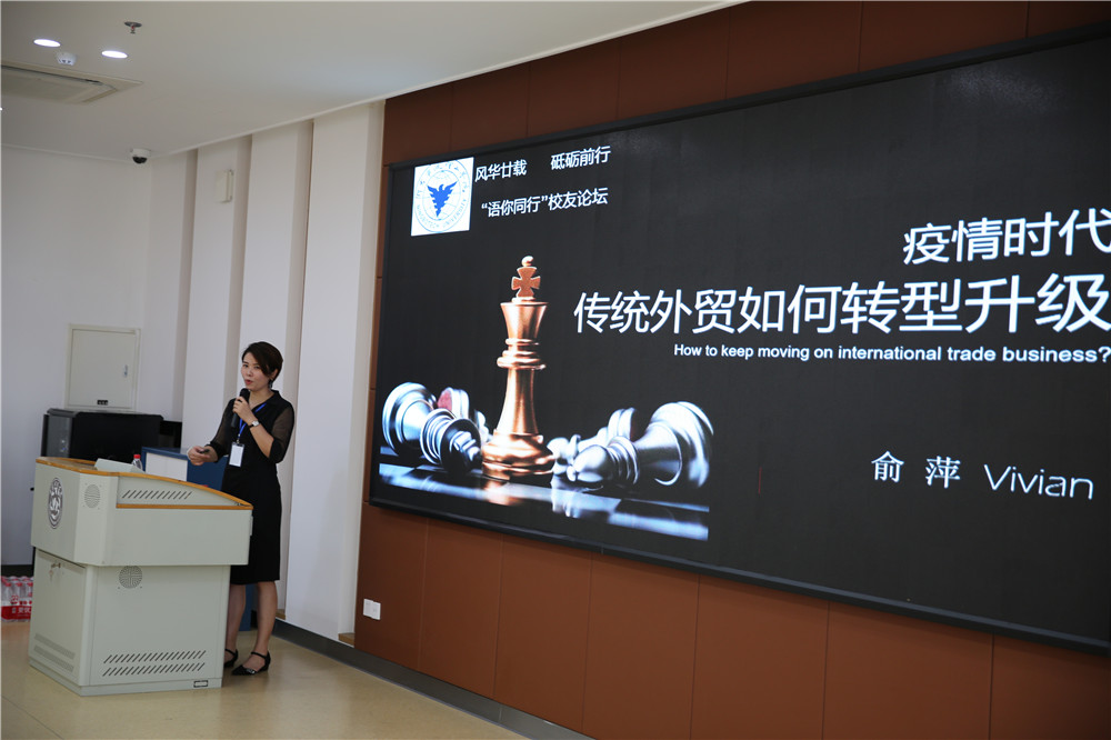 为期一天的论坛上,从事外贸服务的7名校友围绕“传统外贸企业如何转型升级”、“后疫情时代下的货运企业如何另辟蹊径谋求发展”、“如何规避外贸业务中的法律风险”以及“货运行业的行情分析及订船技巧”、“宁波跨境电商发展情况及产业分析”等大家关注的热点问题进行了主旨发言,通过分享自己公司转型的案例,总结开拓跨境电商的经验,分析货运行情和外贸业务中的法律风险,为校友企业如何结合宁波“225”外贸双万亿行动,利用“互联网+宁波制造+跨境贸易”优势,加快转型升级提供了思路和借鉴。在互动交流阶段,与会人员围绕后疫情时代下外贸公司的“困难”与“破局”、如何深度开发欧美发达国家细分市场、如何大力拓展“一带一路”沿线新兴市场进行了探讨。
