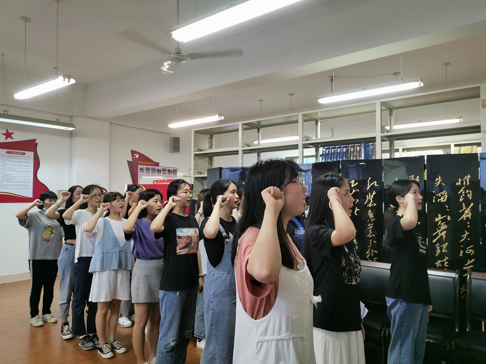 在建党99周年来临之际,为增强党员政治意识,坚定理想信念,6月23日晚,外国语学院党委组织22名新发展党员在SC408学院党员之家举行庄严神圣的入党宣誓仪式。学院党委组织委员、学生第一党支部书记芦美丽老师,学生党员代表一同参加了宣誓仪式。