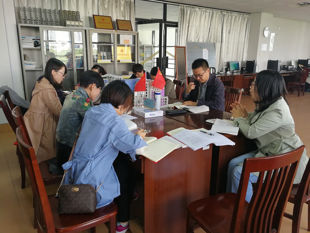 为继续深入开展“不忘初心、牢记使命”主题教育工作,10月30日中午,外国语学院应用语言学研究所第二党支部在SC403集中学习,由支部宣传委员王欢老师为党员们上“以人民为中心”专题党课。会议由支部组织委员孙娟老师主持,除了因病请假的两名教师以外,该支部其他党员教师均参加了本次学习。
