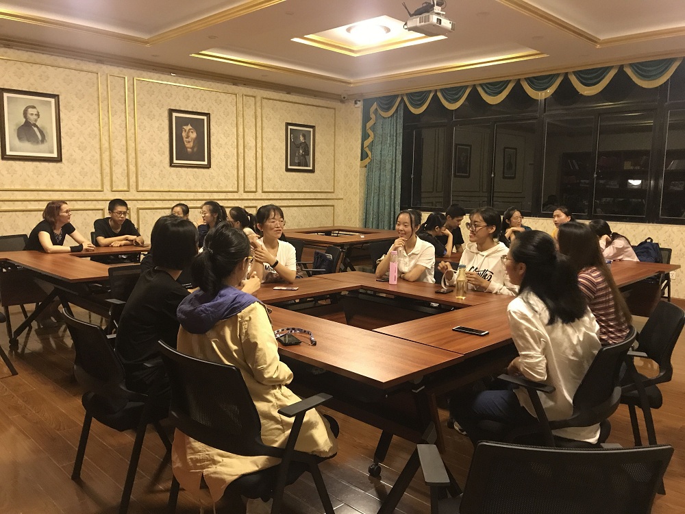 活动伊始,外国语学院的四名外籍教师Terry博士、Christina博士、Magdalena博士和Artur博士,向参加活动的同学们表示了衷心的问候,并分别做了简短的自我介绍。然后大家以Summer Holiday(暑假)为主题,以SC107阳明学堂和SC106的波兰研究中心为活动地点,分成四个小组展开了热烈的交流与讨论。