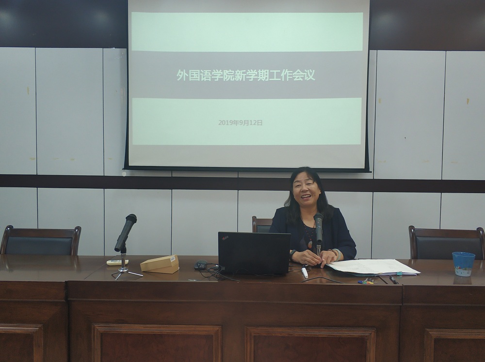 9月12日下午1点30分,外国语学院在SC405会议室召开了新学期工作会议,学院班子成员及全体教职工参加了此次会议。会议由学院党委副书记傅晓宇老师主持。