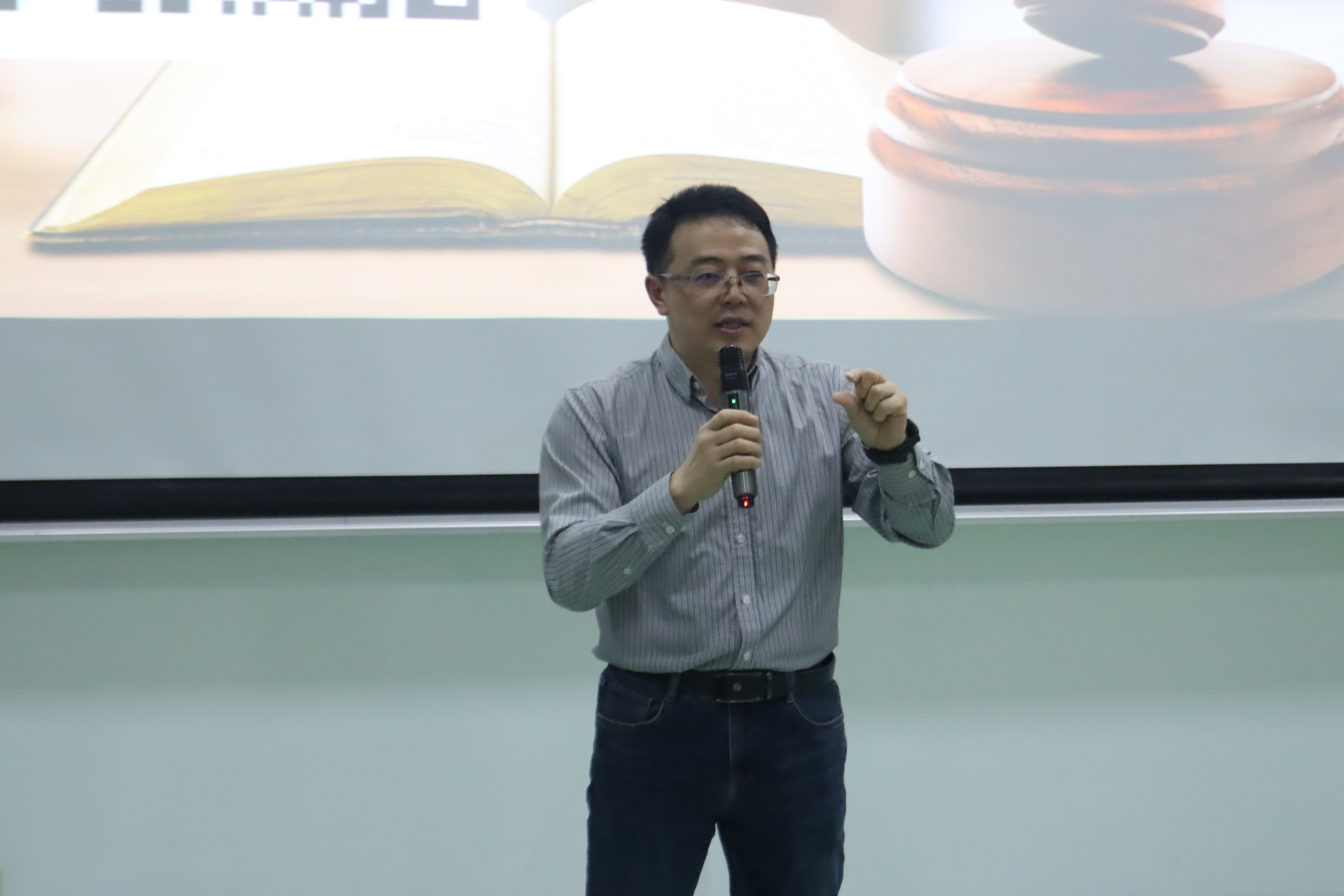 傅勇通过法院情况介绍、江北法院情况介绍、江北法院工作十个热点关键词、法院的工作感受和寄语分享五个方面全方位带领同学们认识法院。傅勇通过公、检、法、司和法院组织体系带同学们认识法院,并结合自身的工作经历,向同学们详细地讲述了江北法院的人员情况、案件情况、机构设置情况、内部管理、案件管辖情况以及江北法院建设过程中的一些特色之处,其中,“无纸化,智能化和数字化”展现了大数据时代下科技对法院的运作产生了重要的影响。傅勇从个人到社会两个层面讲述了作为一名法官的一些有价值、有意义的事情,有长达17.5小时的调解“停工”危机的坚守,也有为民营企业在司法层面的保驾护航,通过真实案件让同学们了解法院的日常审判案件工作。傅勇对在座同学进行寄语分享并对同学们提出的问题进行答疑,使同学们对此次讲座内容有更深刻的理解。