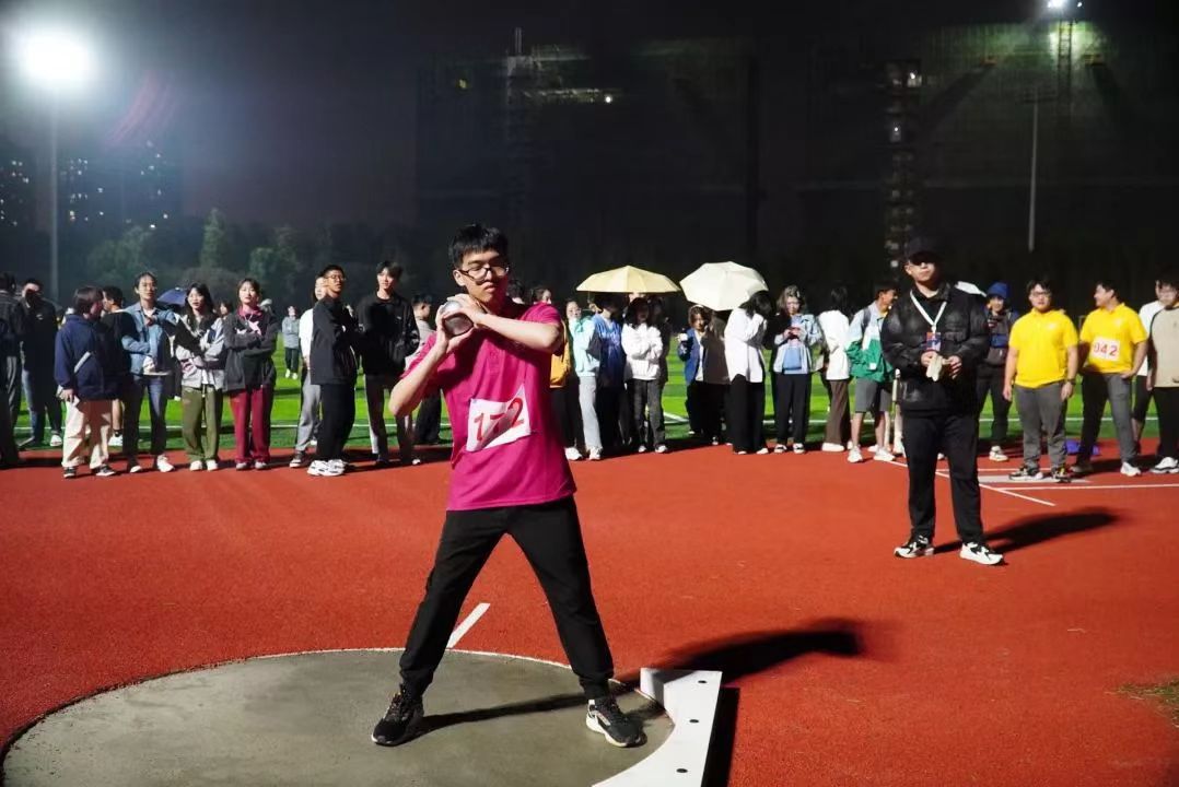 奏鸣青春旋律,燃情热血赛场。场上,运动员们突破自我,与时间赛跑,夜色下的他们奋力拼搏,跌倒之后勇敢起身,继续向前奔跑,展现着少年的朝气与锋芒;场下,工作人员恪尽职守,服务运动员,同学们为运动员们呐喊助威,为赛场增添热情。