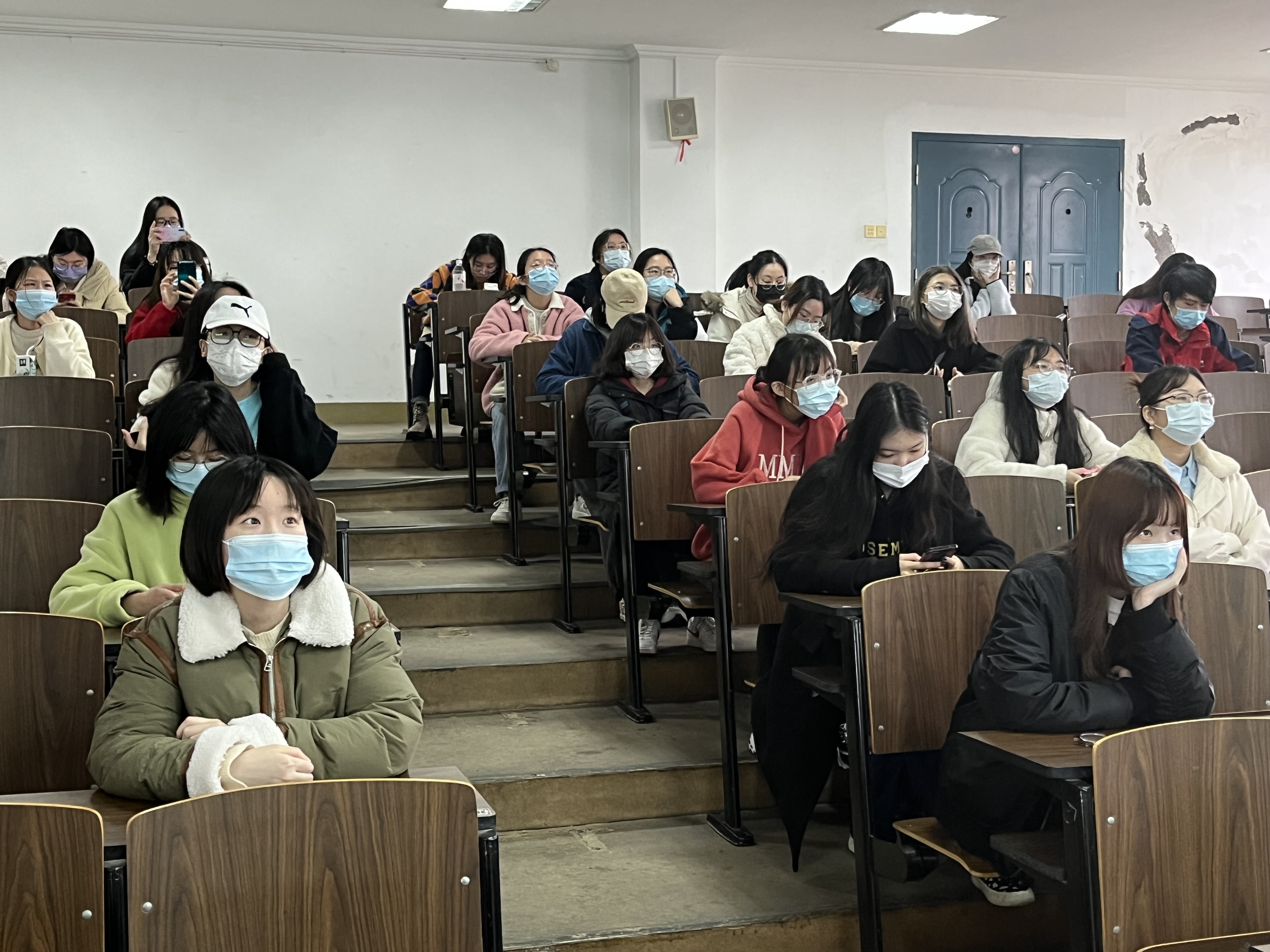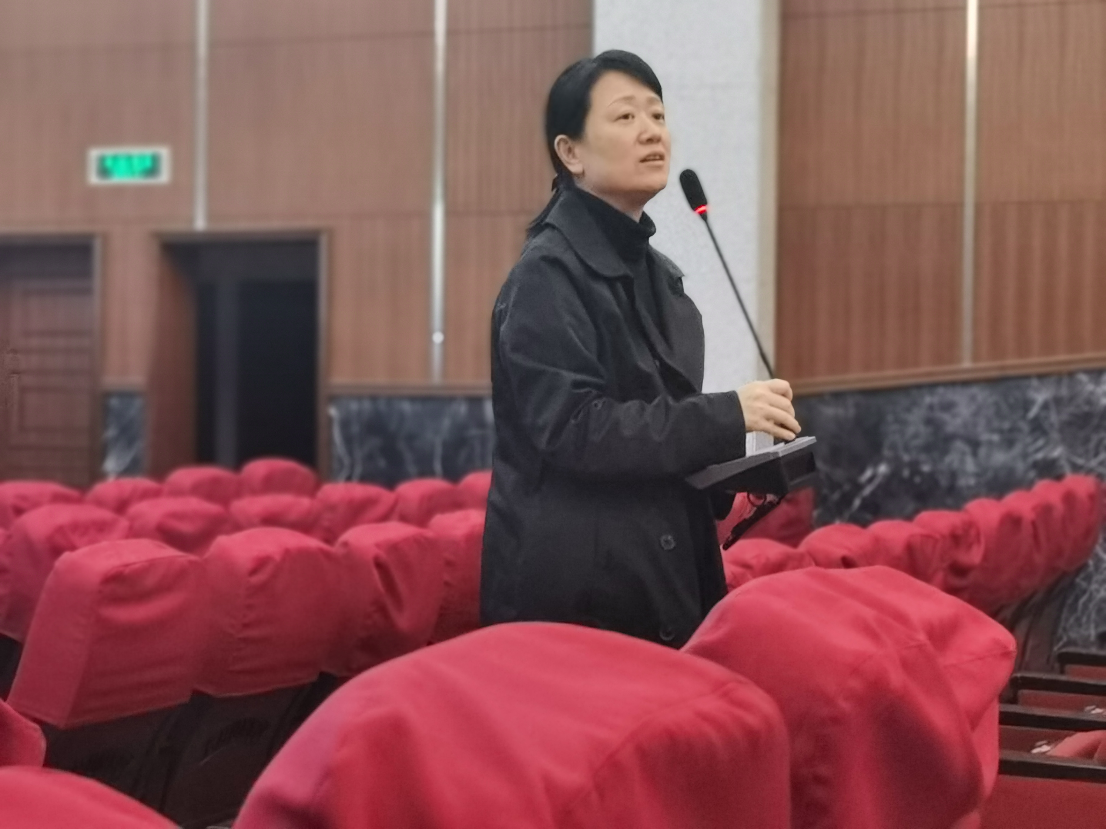 韩缨从毕业论文方面对毕业生们进行了讲解:首先,各位同学要与论文指导老师至少进行一次面谈;其次,通报了今年省教育厅对毕业论文进行抽检的相关要求,希望各位同学能重视起来,端正论文写作态度;最后,就学院组织论文答辩的相关要求和流程进行了说明。