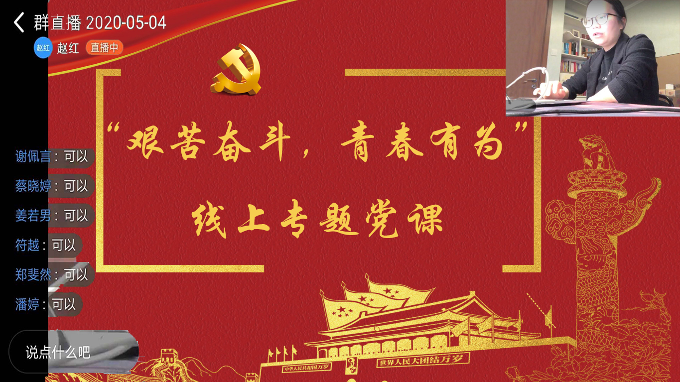 为引导青年学生发扬“五四”精神,贡献青春力量,5月4日晚,传媒与设计学院学生设计党支部以钉钉直播的形式组织开展了“艰苦奋斗,青春有为”的线上专题党课,由支部书记赵红老师主讲。学生设计支部的全体党员和入党积极分子参加了此次学习。