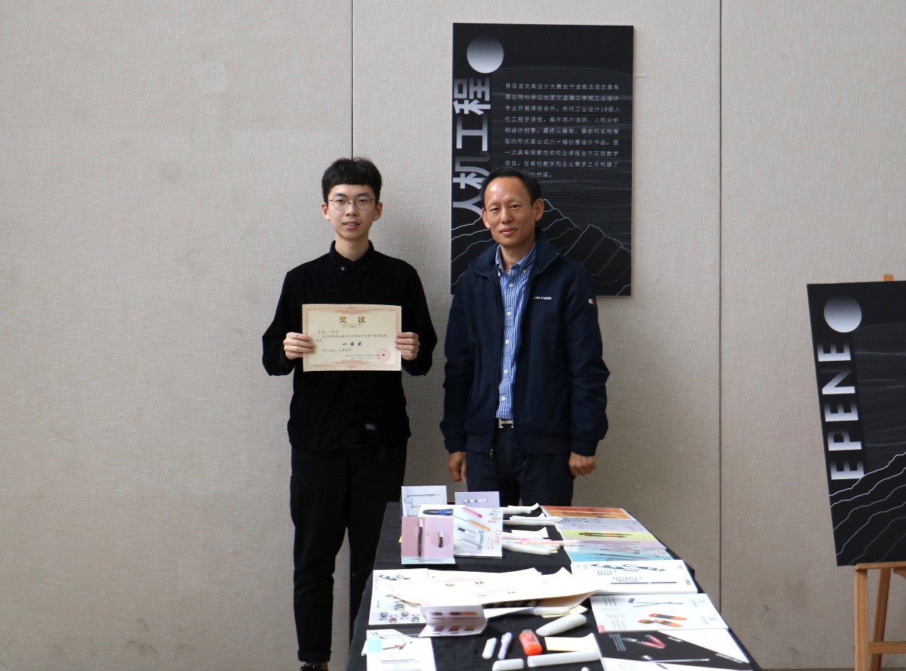 展出开始后,到场的每位同学用1-2分钟时间向企业代表做了设计理念陈述,并回答企业评审代表的提问。经过两小时紧张的现场答辩和评审,本次文具设计大赛共评选出了一等奖一名,二等奖两名,三等奖四名。最后易派诺文具有限公司吴经理给获奖同学颁发了获奖证书和奖金,并给每位同学赠送了文具礼品。吴总点评了同学们的设计创意,并希望尽快将选中的设计创意投入到实际生产之中。同时他也对部分同学的新颖设计因为结构、生产工艺上的限制未能入选投产而表示遗憾。此外,企业方对校企双方通过专业课程项目推动合作的方式表示很有成效,希望进一步扩大交流,加强合作。今后能结合专业课程建设更多的产品落地项目。