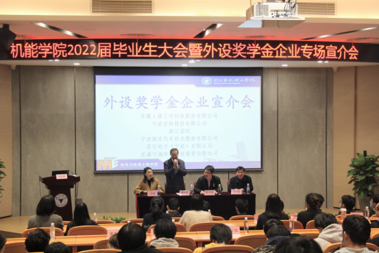 会上,学院党委副书记王晶介绍机能学院共有8家企业在院设立奖学金,这些企业都是在行业内颇具影响力和发展前景,在自身做大做强以后,回馈教育事业,关心学生成长,代表学院对企业的善行善举表示感谢,随后到场的6家外设奖学金企业,乐歌人体工学科技股份有限公司、宁波宏协股份有限公司、浙江宏纪、宁波旭升汽车技术股份有限公司、星宇电子(宁波)有限公司、昱源宁海环保科技股份有限公司等招聘负责人依次上台宣讲,与毕业生进行互动交流,达成初步就业意向。