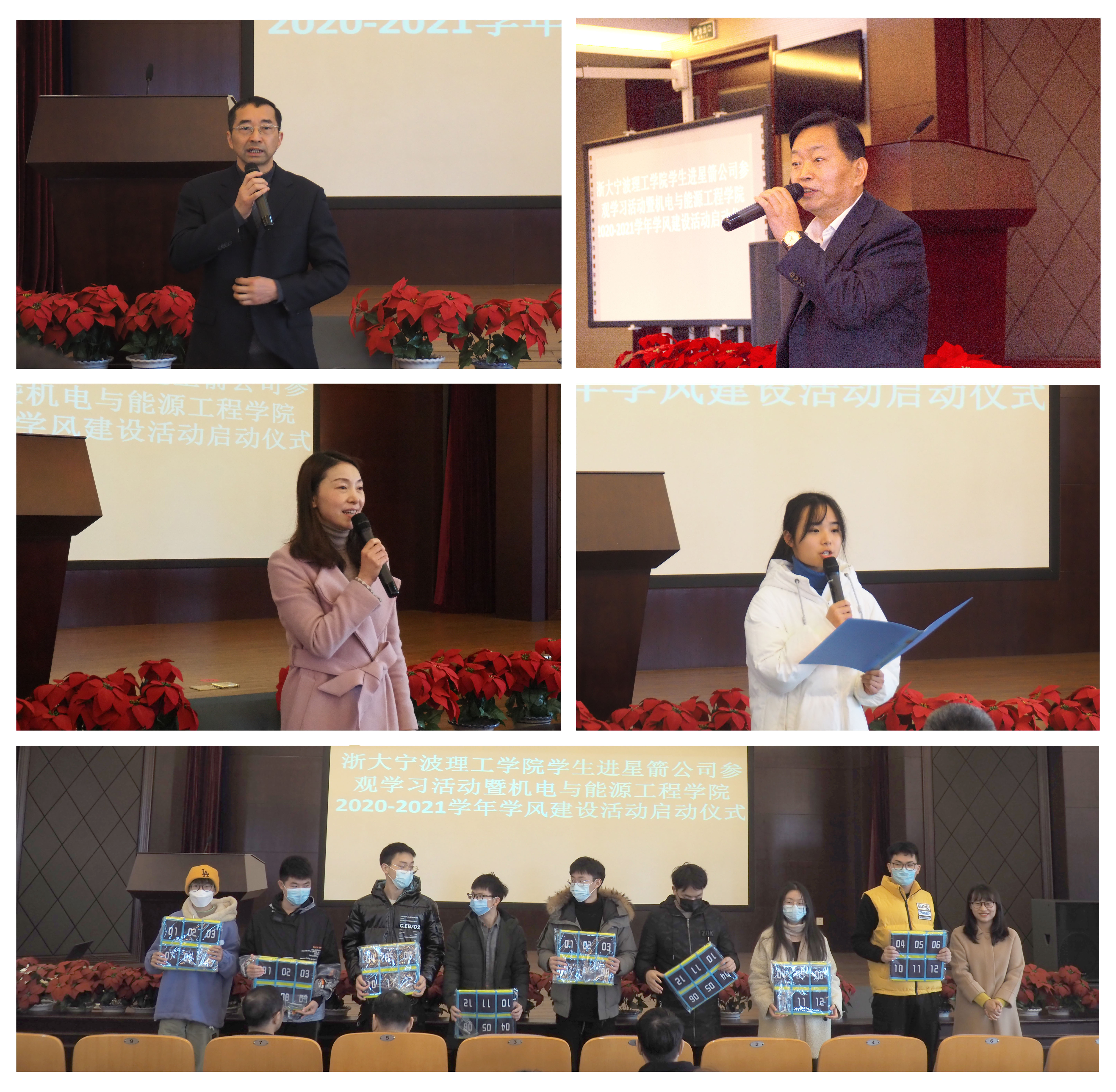 为进一步加强学院学风建设,激发学生专业兴趣,12月25日上午,机能学院组织学生赴宁波星箭航空机械制造有限公司参观学习并举行2020-2021学年学风建设活动启动仪式。机能学院党委书记、副院长童微星,党委副书记、纪委书记王晶,教工第五党支部书记张钊副教授和学工办全体辅导员带领学院各班学生代表共五十多名同学参加活动,受到宁波星箭航空机械制造有限公司董事长严国元、党委副书记罗巧的热情接待。
