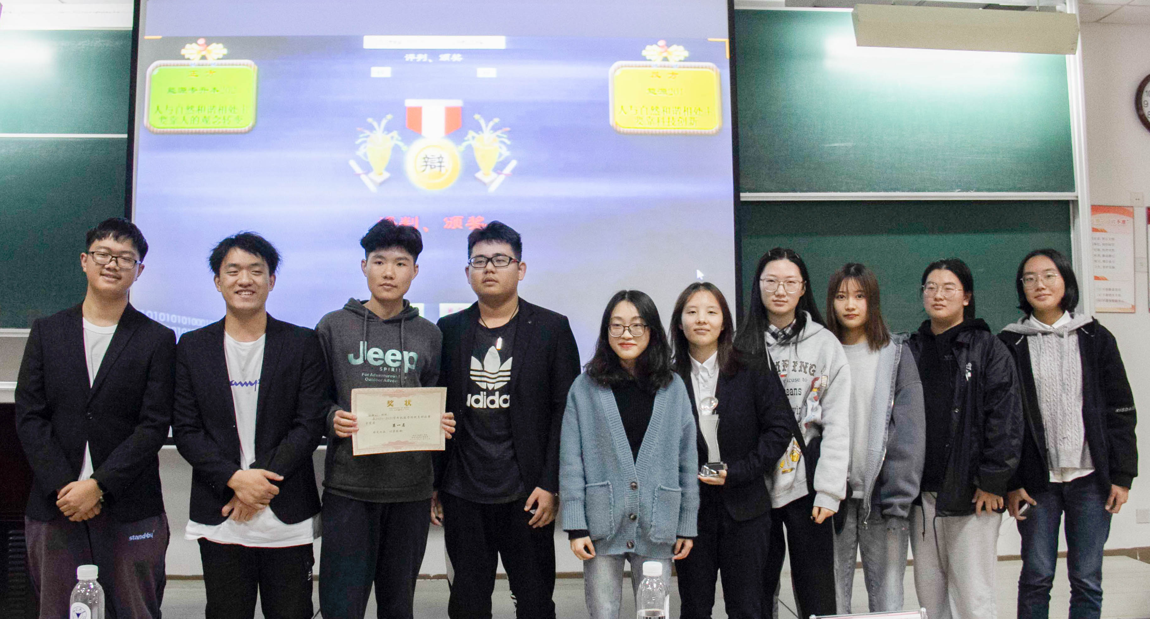 紧接着,比赛开始,机制205班与能源专升本201班就“高度发达外星文明入侵,人类应该卑微地活着还是有尊严的去死?”为辩题展开了季军之争。能源专升本202班与能源201班就“人与自然和谐相处主要依靠人的观念转变还是科技创新”为辩题展开了冠亚之争。比赛过程中双方辩手你来我往,滔滔不绝,场下观众们也激情澎湃,掌声连连响起。气氛不断升温,精彩激烈的自由辩环节更是将气氛推到了顶峰。每场比赛结束后评委都对比赛做出了相应的点评,对同学们的努力给予肯定与鼓励。经过两场激烈的比赛,最后由能源201班摘得桂冠,能源专升本202班夺得亚军,能源专升本201班位列季军,最后由阮佳蒂为各班进行颁奖。