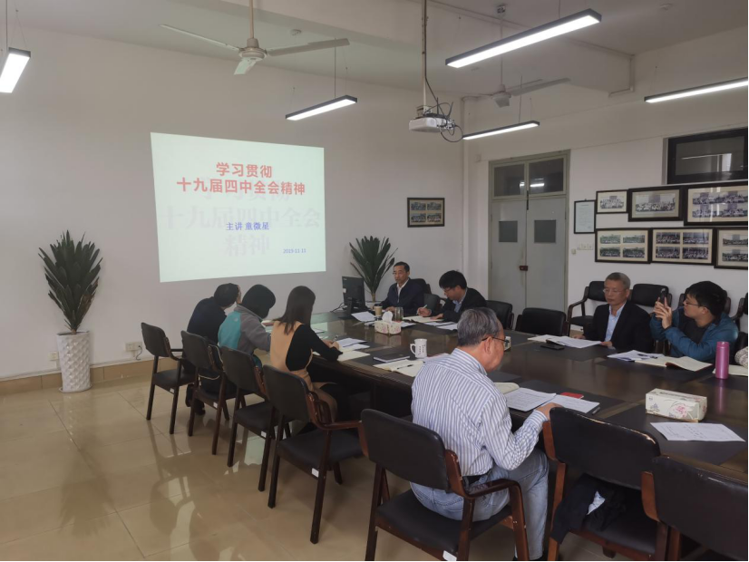 11月11日上午,机能学院党委理论学习中心组成员及各支部书记在学院会议室召开专题学习会,认真学习党的十九届四中全会精神,学院党委书记童微星为与会同志上了一堂专题党课。