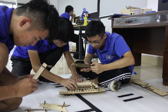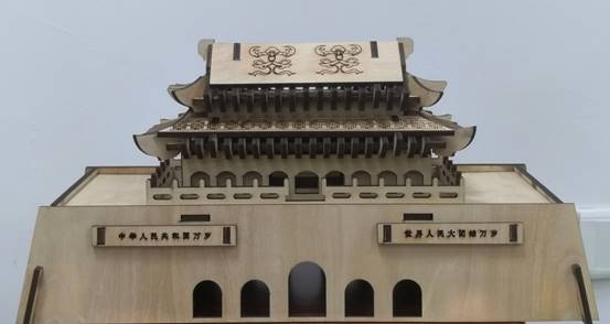 机能学院学生利用所学专业知识,借助软件进行设计制图,使用激光切割机来切割5mm木板制作零件,再进行配合拼装完成制作的天安门城楼模型,以此来向祖国献礼,用行动展现了出对祖国的赤诚之心。