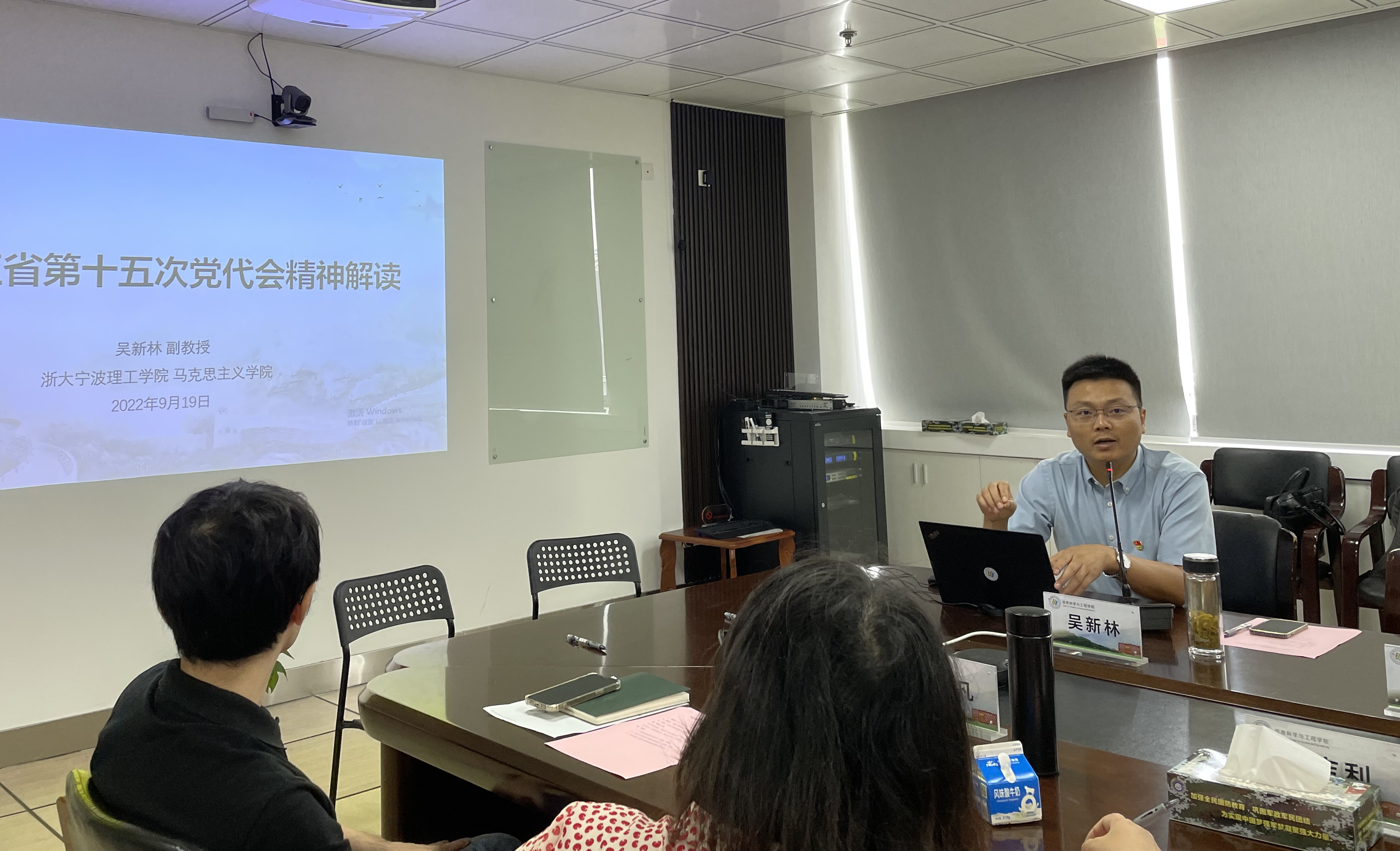 吴新林围绕“五问”,全面解读了党代会要义。吴新林解读了浙江省作为“共同富裕先行”和“省域现代化先行”的历史背景和重要意义,随后围绕党代会主要回答的问题,吴老师将其概括为心怀“国之大者”的政治报告、着眼“制胜未来”的时代报告、引领“塑造变革”的发展报告、担当“先行示范”的实干报告,全面阐述了报告的深远意义;他指出新的遵循指引新征程是党代会报告的灵魂,5大战略指引和11方面重要遵循相互贯通、一脉相承,深刻回答了“国之大者”与浙江使命、理论与实践、战略与策略、目标与路径等基本问题。今后五年的奋斗目标作为报告的重中之重,核心在于“8个高地”,“五大工作导向”和“10个着力”,相辅相成形成了制胜未来的战略战术战法“组合拳”。吴新林通过生动的历史事件展现了浙江省一路奋斗而来的筚路蓝缕,以及辉煌成就,并对浙江人干在实处、走在前列、勇立潮头的实干品质和创新精神给予了高度的评价;最后,他强调,推进“两个先行”关键在党,党的自身建设和正风肃纪反腐工作永远在路上,是守住红色根脉和永葆社会主义底色的重要之举。
