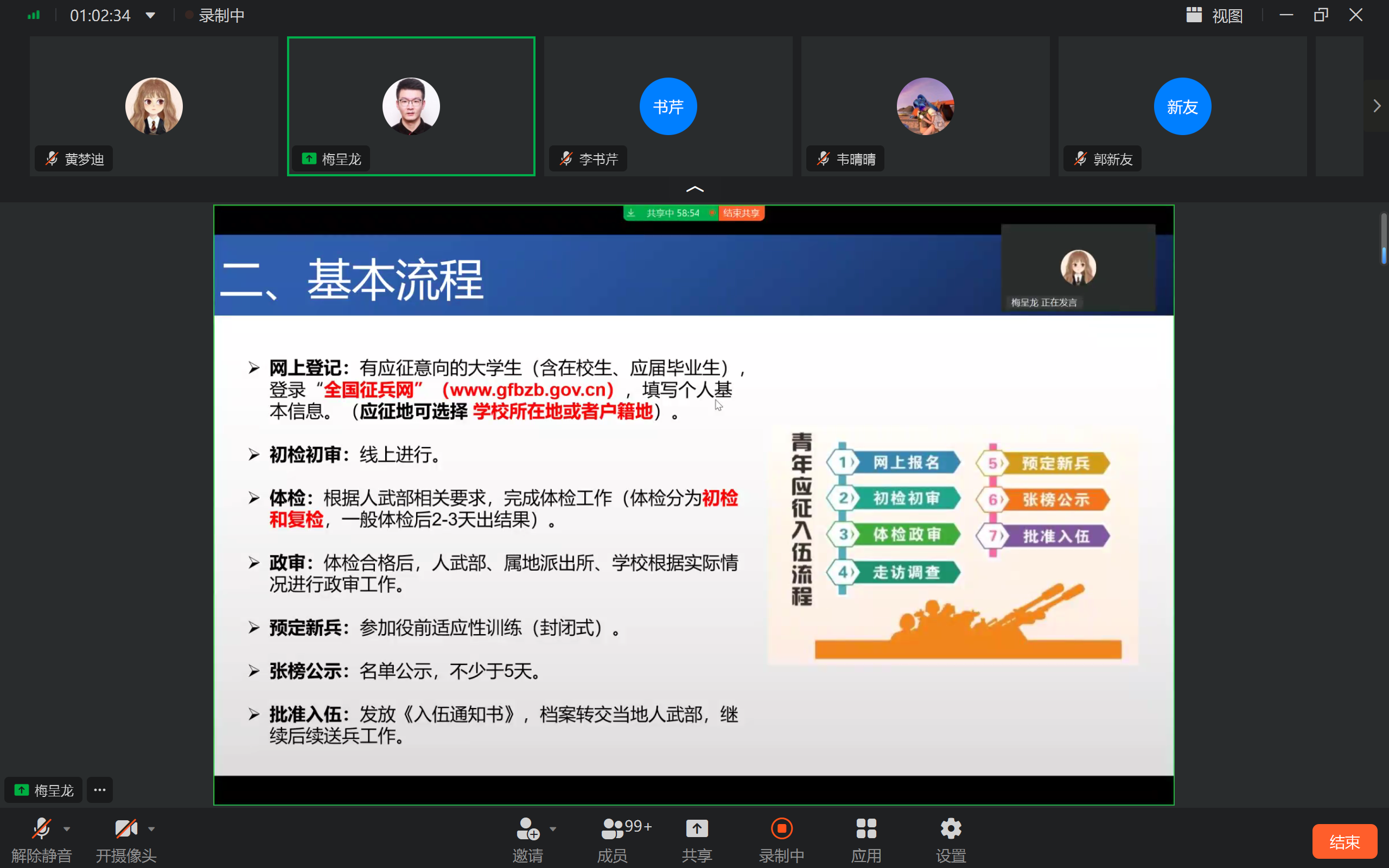 梅呈龙就毕业生征兵入伍相关政策进行了宣讲,重点为毕业生们讲解了目前国家在入伍大学生考研、就业、学费减免方面的支持政策,鼓励有志于参军入伍的大学生积极踊跃报名,抓住人生中的重要机会,圆一个军人梦。
