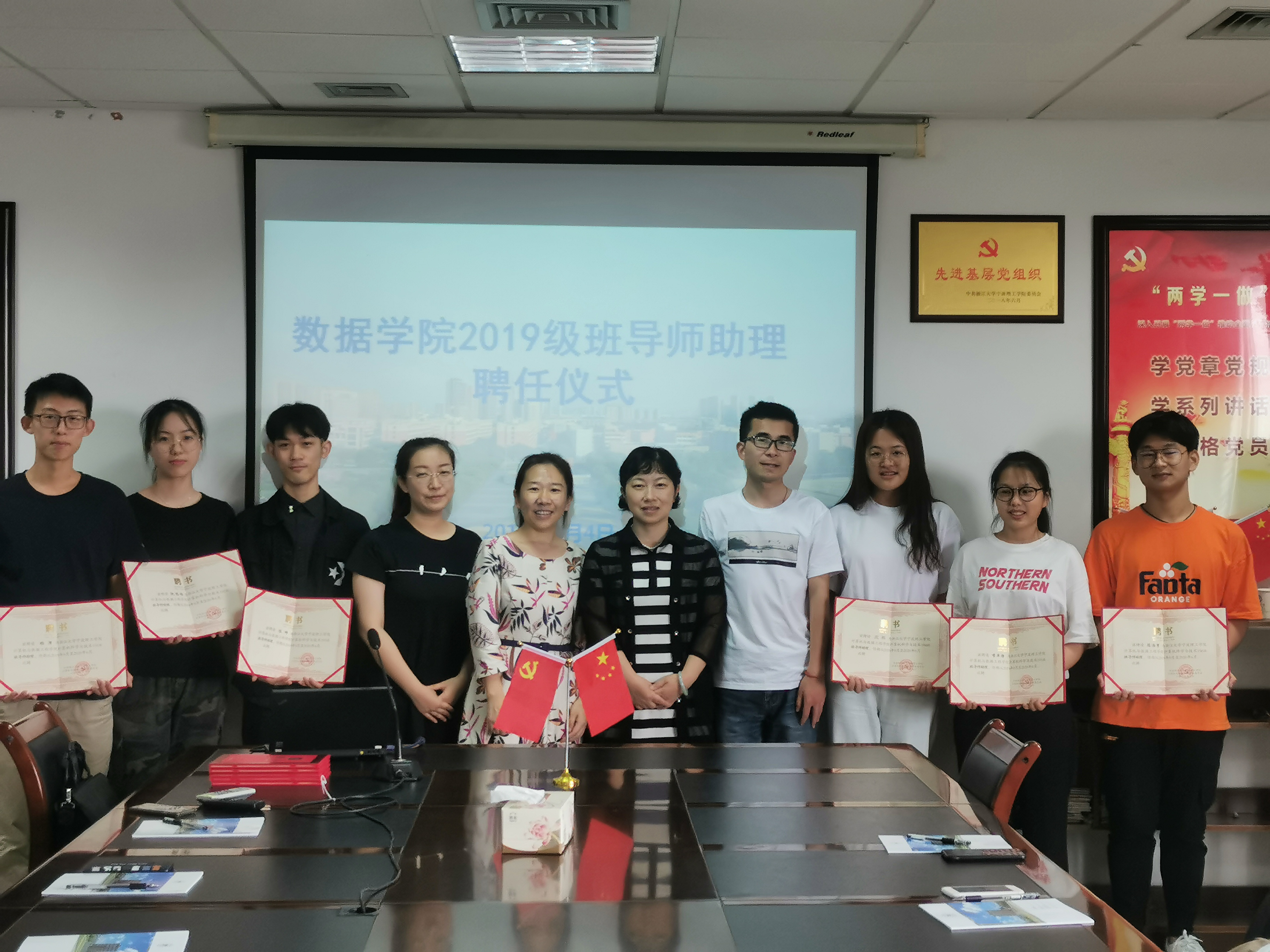 7月5日下午,数据学院在石麟602党员之家举行2019级班导师助理聘任仪式,学院党委副书记汪洪老师出席、学工办老师和全体2019级班导师助理参加。