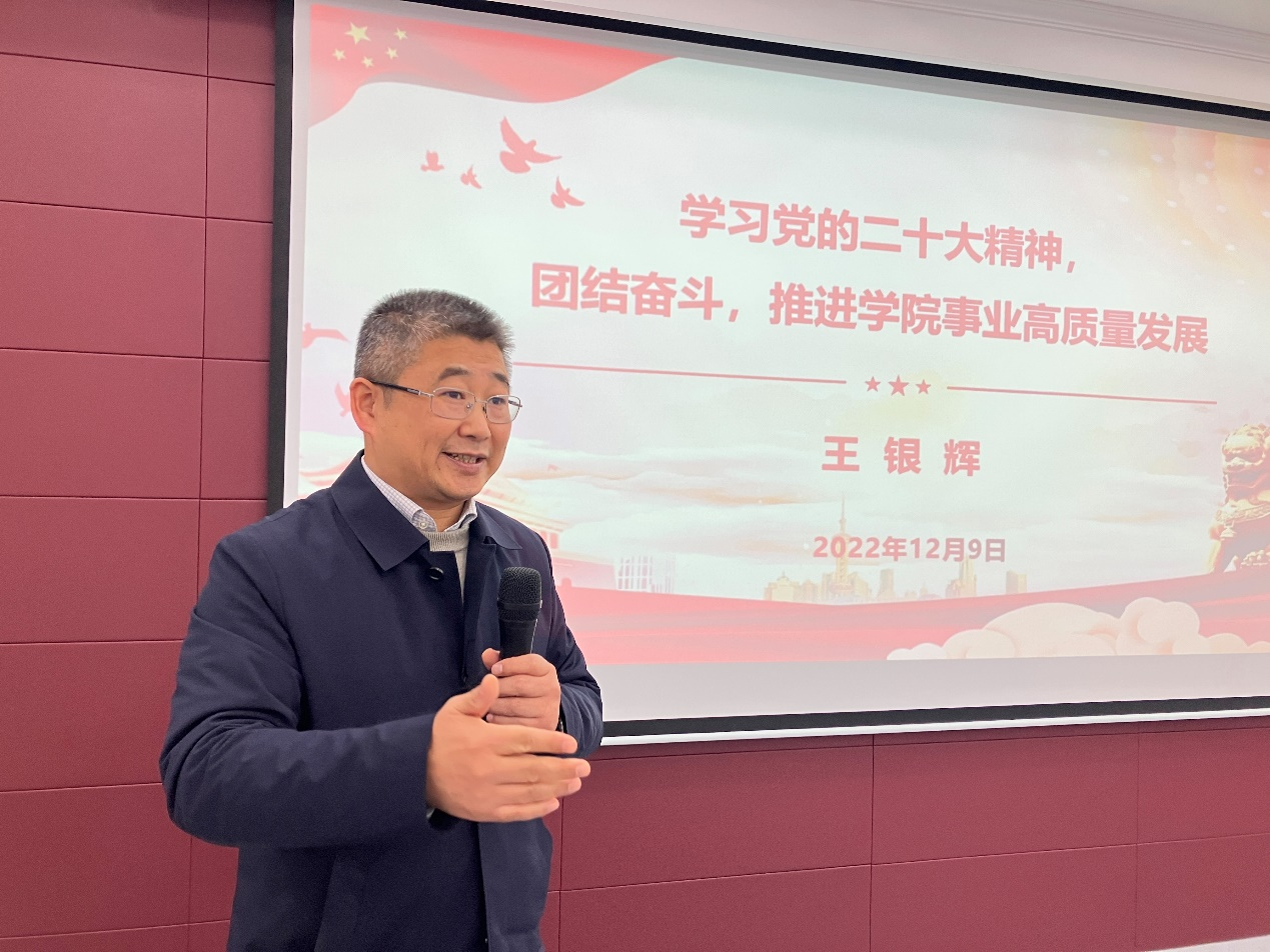 12月9日下午,土建学院在SA305报告厅举行了全体教师政治理论学习会暨书记讲党课,学院党委书记王银辉为学院全体教师讲了主题为“学习党的二十大精神—团结奋斗,推进学院事业高质量发展”的党课。