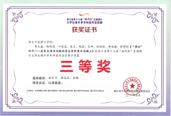 近年来,学院积极以“科研育人”、“竞赛育人”等多种形式,激发学生们对于专业学习的探索兴趣与热情,并提供良好平台进行实践,该论文的成功发表离不开学院的大力支持和指导老师的悉心指导。此前,徐亦冬教授便鼓励李王鑫同学参与课题组科研试验工作,同时指导李王鑫同学组织本科生团队,以参与比赛的形式对取得的成果进行深入挖掘。2021年3月,项目团队获学校第七届“挑战杯”大学生课外学术科技作品竞赛特等奖;2021年5月,斩获浙江省第十七届“挑战杯”大学生课外学术科技作品竞赛三等奖。在此过程中充分引导学生发挥其创新性思维,培养学生团队合作精神,同时激励教师教学科研无缝衔接。