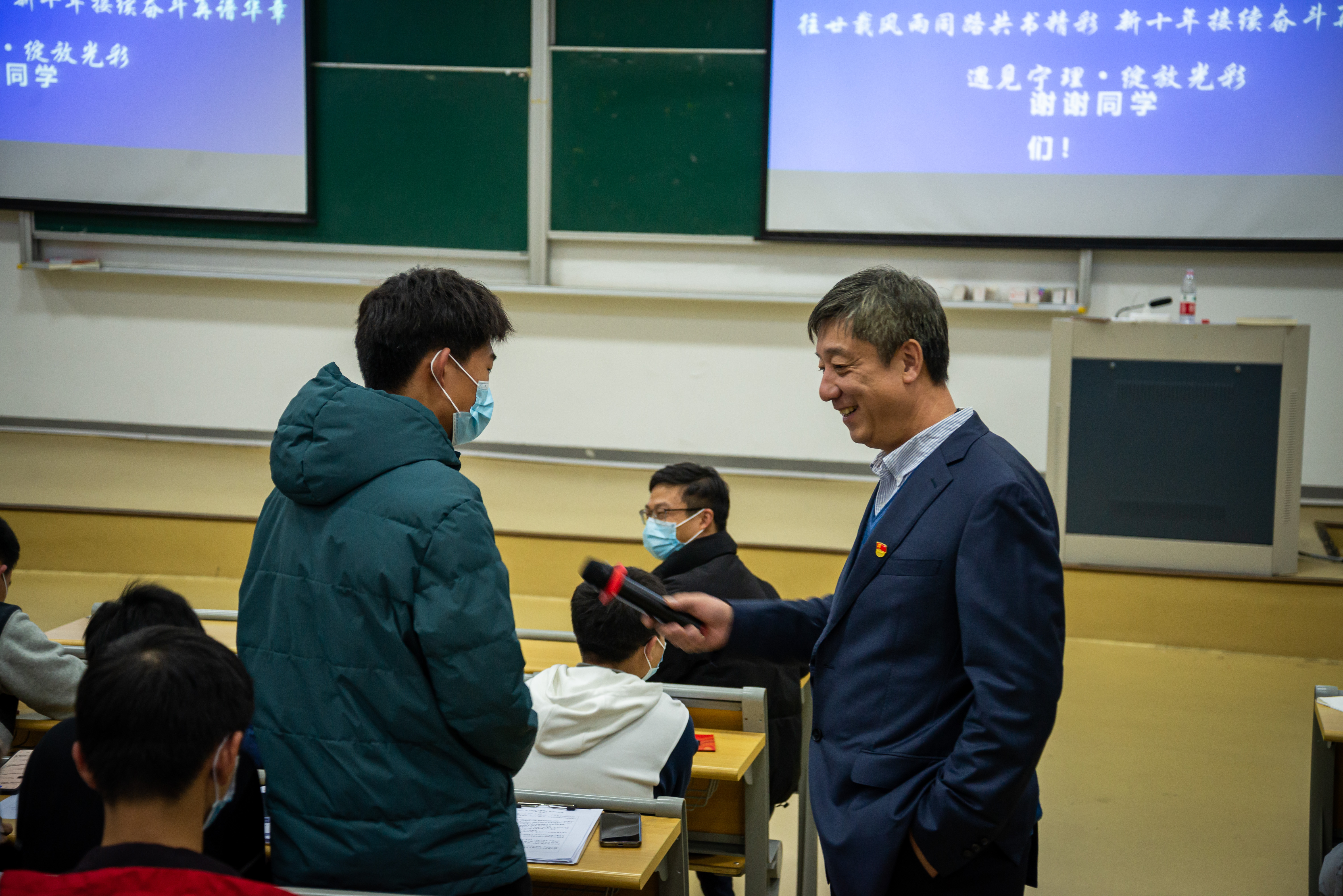 课程最后,同学们发言提问,胡征宇认真回答了同学们提出的问题,并向他们赠送了书籍。同学们纷纷表示,胡书记的课生动精彩,有高度、有温度、有深度,让我们对党史和校史有了更深入地了解,期待今后还有机会聆听胡书记的课。