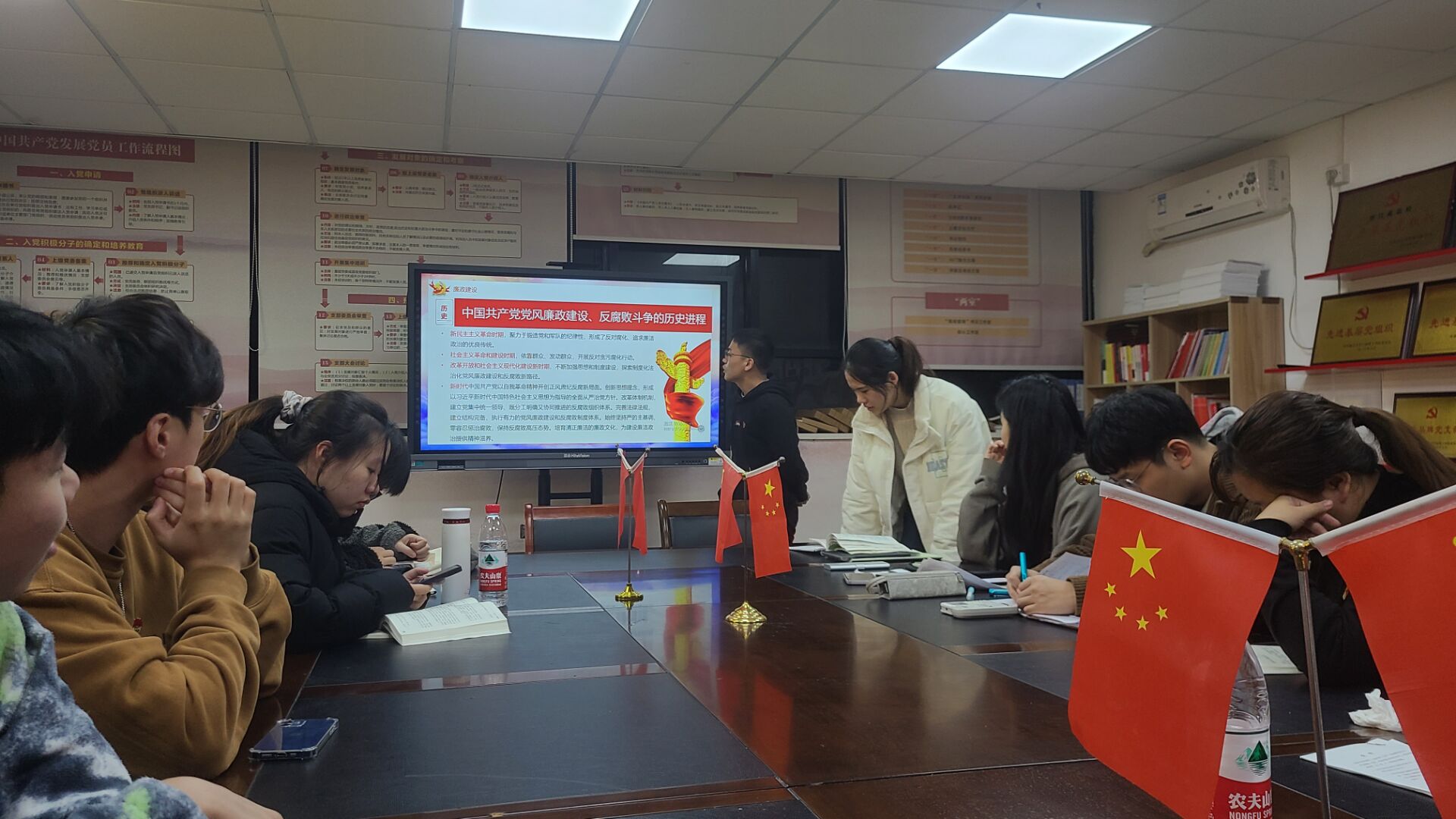2021年11月29日,土木建筑工程学院工管学生党支部在党员之家开展了以“党风廉政建设”为主题的党日活动,支部全体党员参与学习。