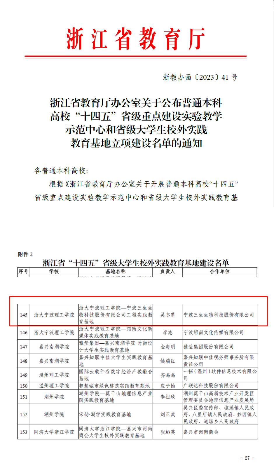 近日,浙江省教育厅公布“十四五”省级重点建设实验教学示范中心和省级大学生校外实践教育基地立项建设名单,我校生化学院申报的省级大学生校外实践教育基地(久久精品一区二区三区四区|日韩欧美福利视频_欧美黑人巨大videos精品_欧美黑人巨大xxxxx_欧美黑人乱大交_欧美黑人乱大交_欧美黑人牲交videossexeso_欧美黑人添添高潮a片www_欧美黑人添添高潮a片www_欧美黑人性暴力猛交喷水黑人巨大-宁波三生生物科技股份有限公司工程实践教育基地)获批立项。这是生化学院首个省级大学生校外实践教育基地。